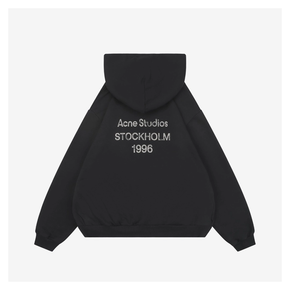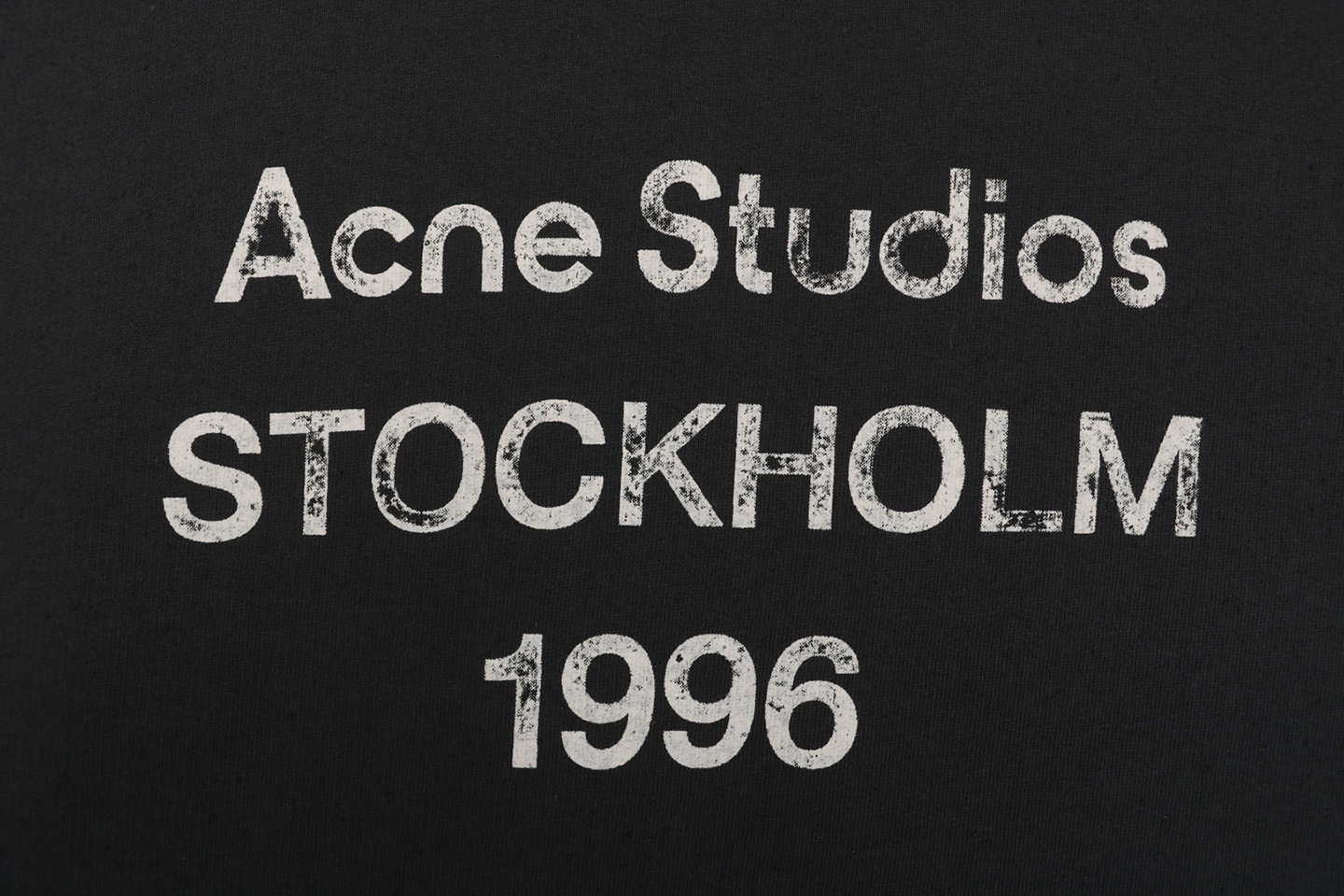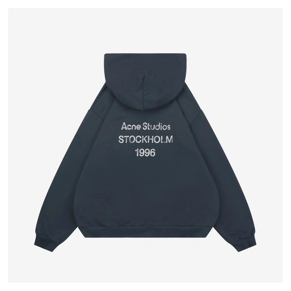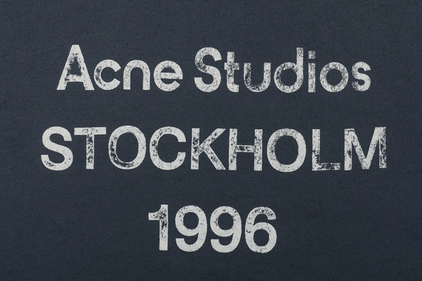 The Acne Studios 1996 Distressed Lettering Hoodie presents a clean front and a bold statement on the back. Featuring textured embroidery with “Acne Studios STOCKHOLM 1996,” the design pays tribute to the brand’s roots in Sweden. Crafted from thick fleece cotton, this hoodie balances simplicity and detail—perfect for minimalists who appreciate subtle branding. The ribbed cuffs and hem ensure a structured silhouette, while the hood provides added warmth and comfort. Available in two understated tones: washed black and charcoal navy.