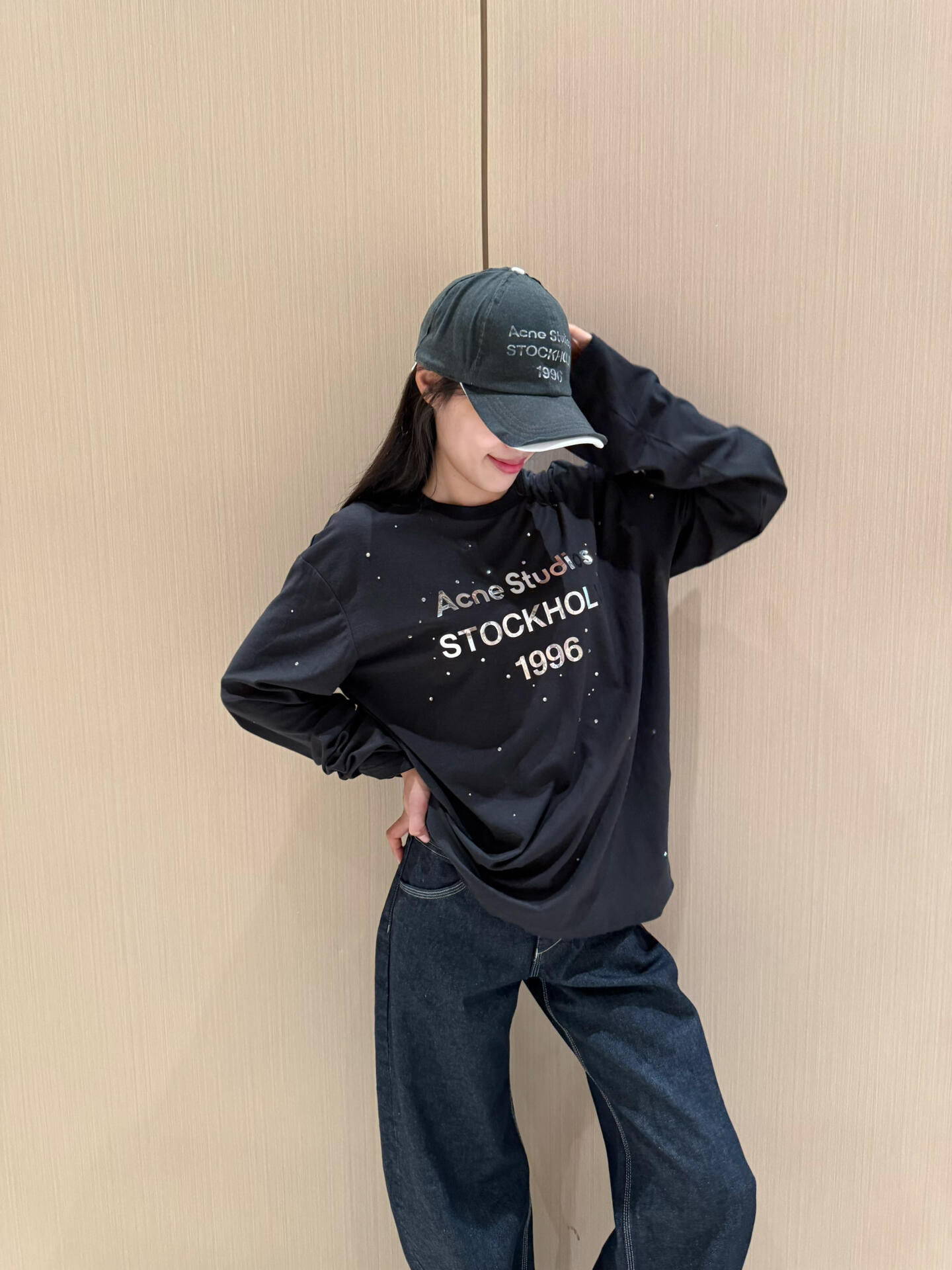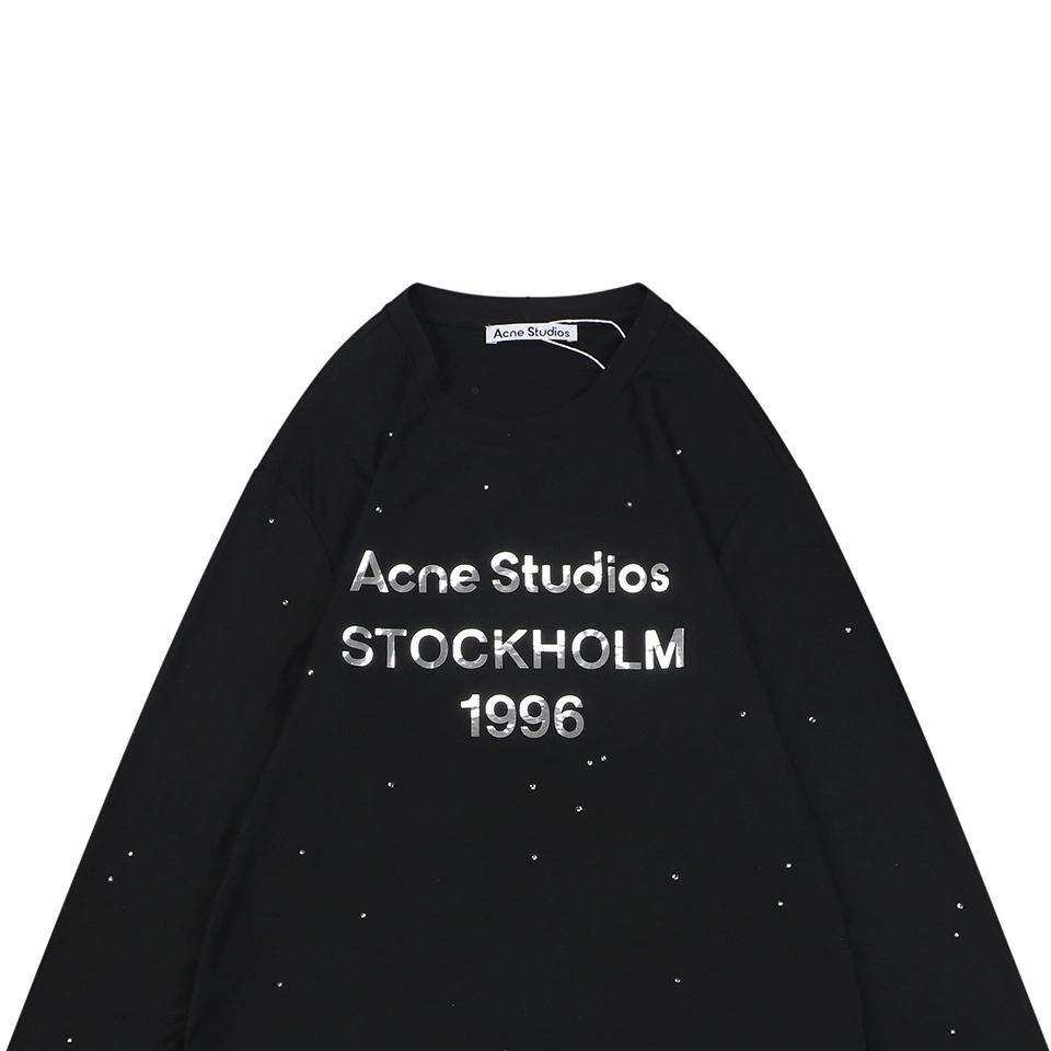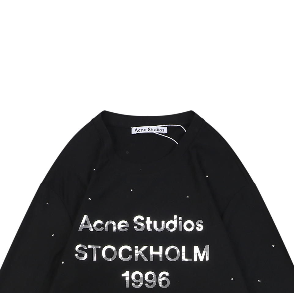Featuring a mirrored logo print combined with precision-positioned rhinestone embellishments, this long sleeve top adds subtle shine without overpowering the overall aesthetic. The laser-finished graphic and reinforced hot-fix rhinestones ensure durability and wash resistance. Designed with a relaxed fit, it embodies Acne Studios’ signature effortless attitude, making it a versatile unisex piece suitable for everyday wear, layering, or elevated street-style looks.