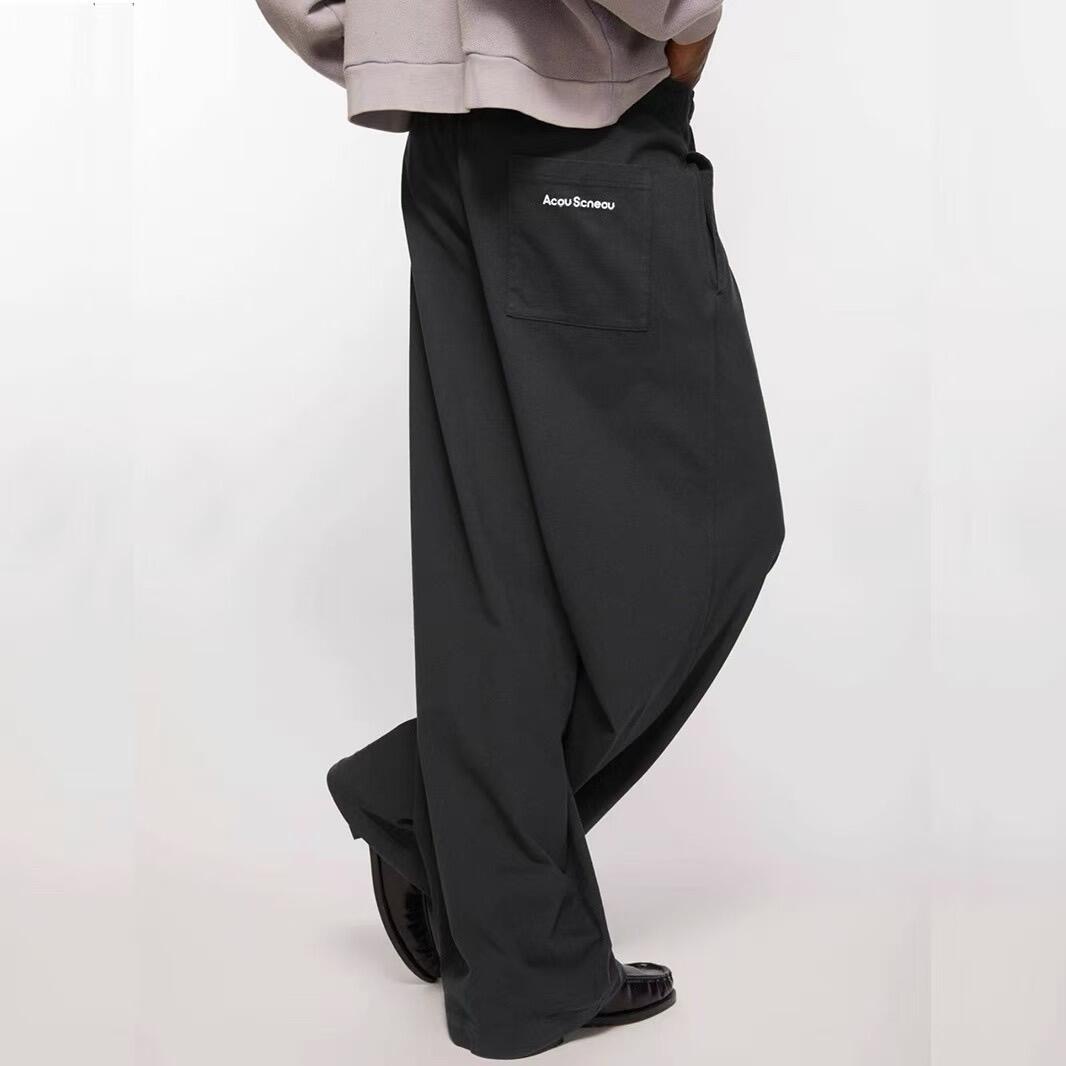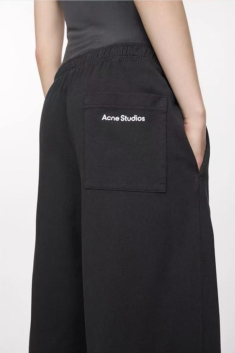 These Acne Studios wide-leg pants offer a refined take on streetwear ease. Designed with a fluid drape and relaxed silhouette, they feature a clean front and an embroidered Acne Studios logo on the back patch pocket. The elastic waistband ensures a secure fit, while the roomy leg provides all-day movement and style. A subtle staple that elevates your everyday looks.