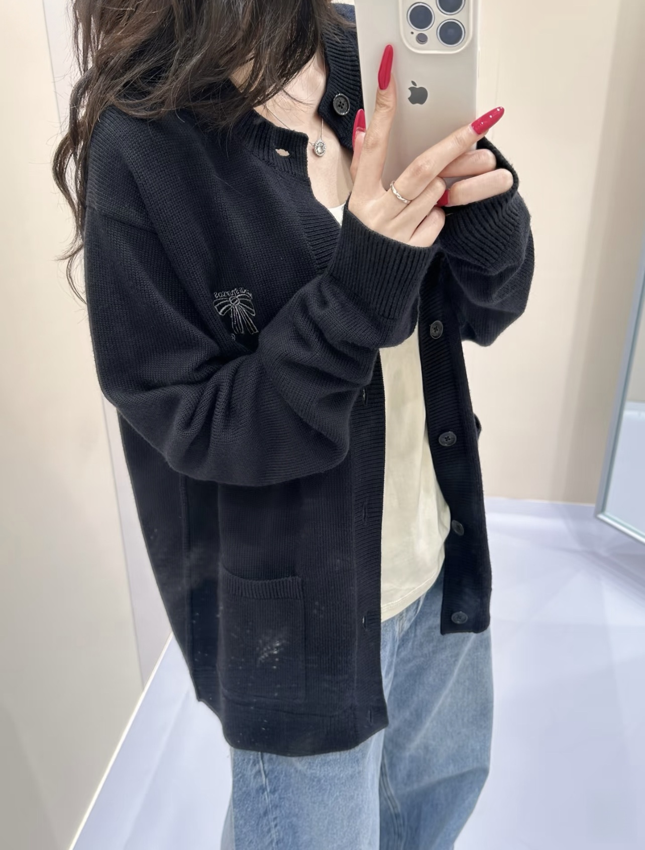 Acne Studios Bow Logo Embroidered Knit Cardigan Acne Studios Bow Logo Embroidered Knit Cardigan