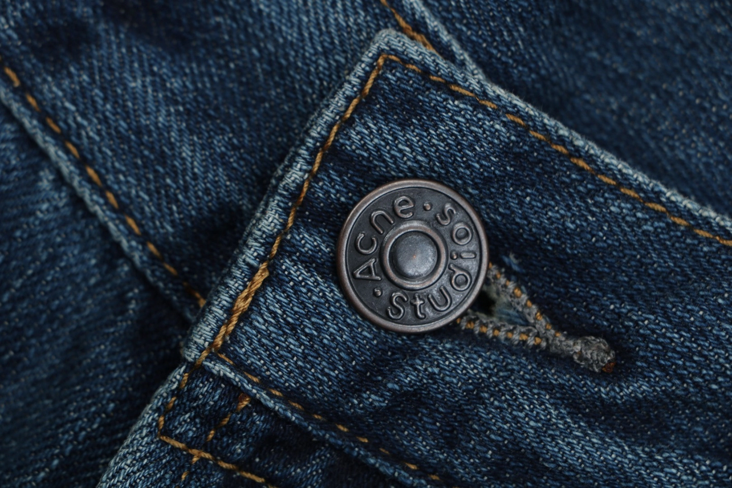 The Acne Studios Distressed Denim Jeans reinterpret classic denim with a raw, worn-in aesthetic.