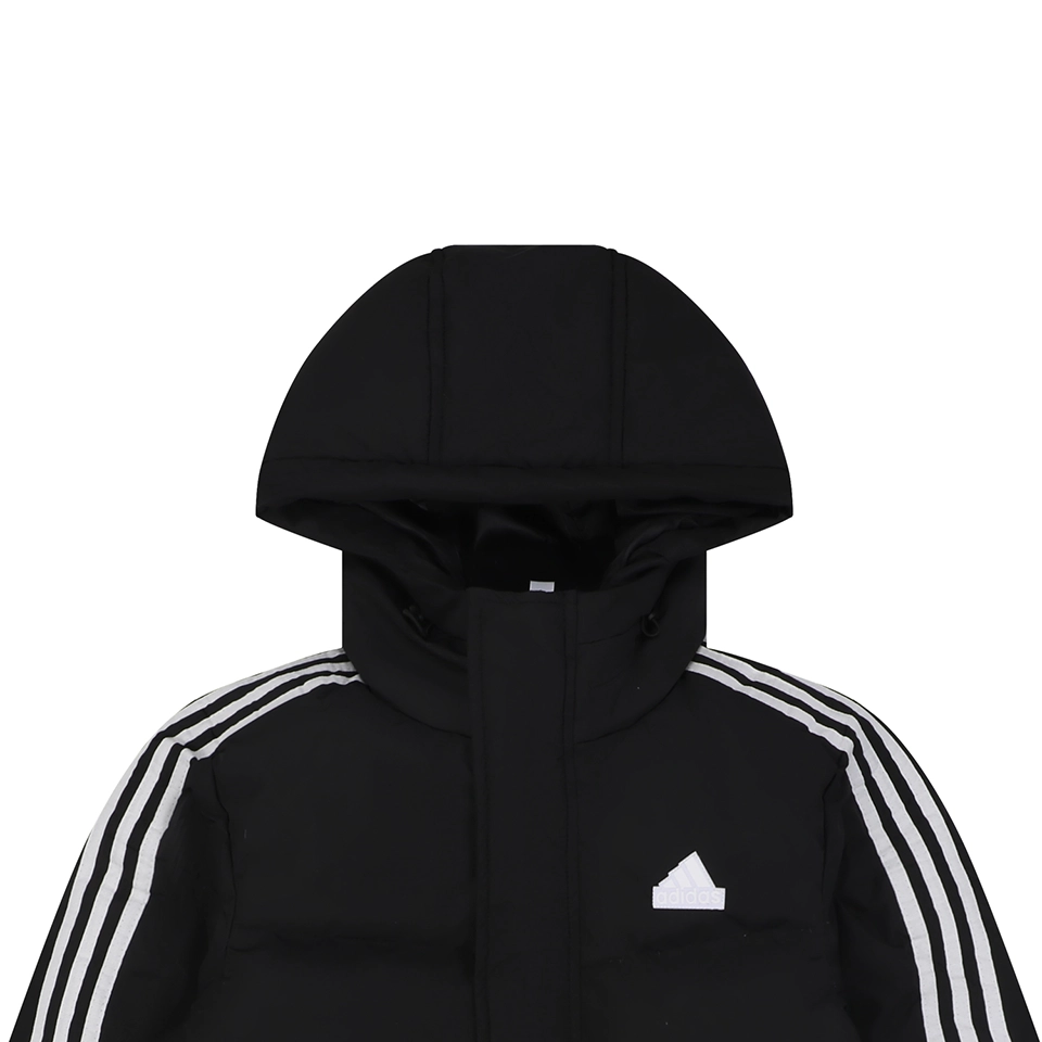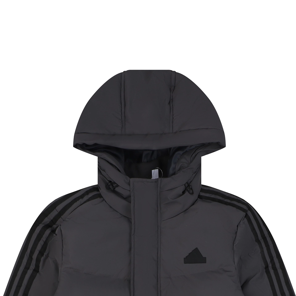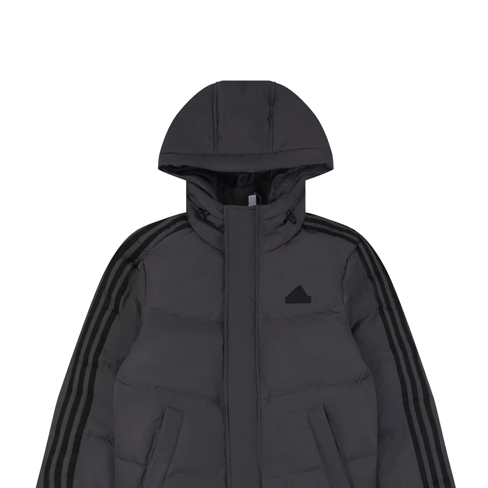 Adidas Three-Stripe Hooded Down Jacket (Black/Grey/White)