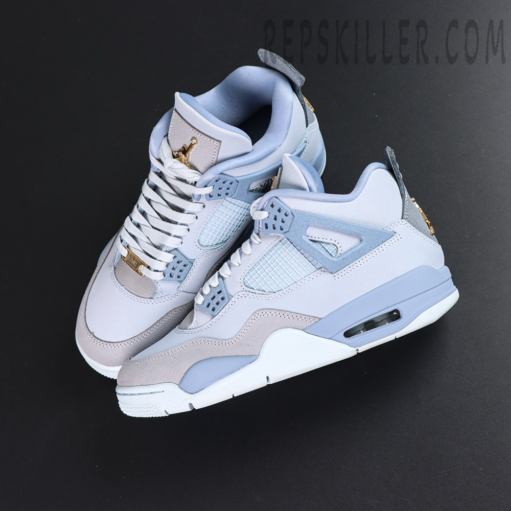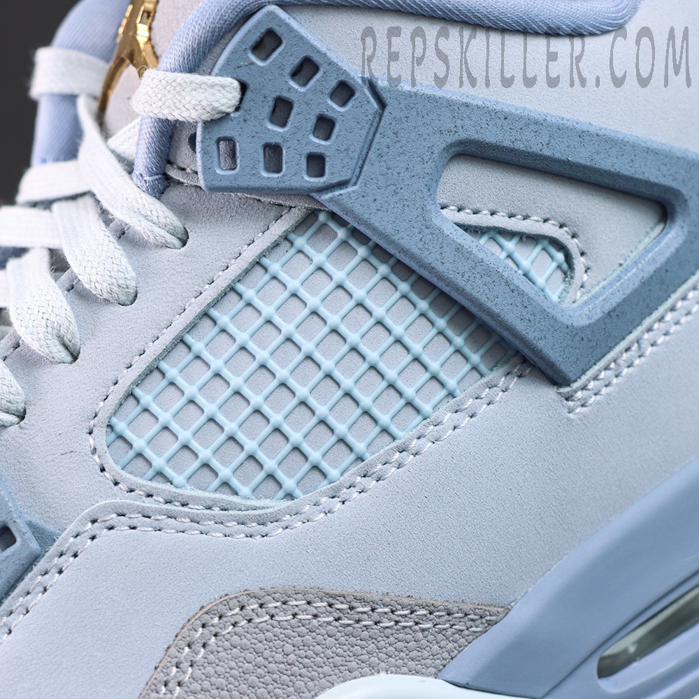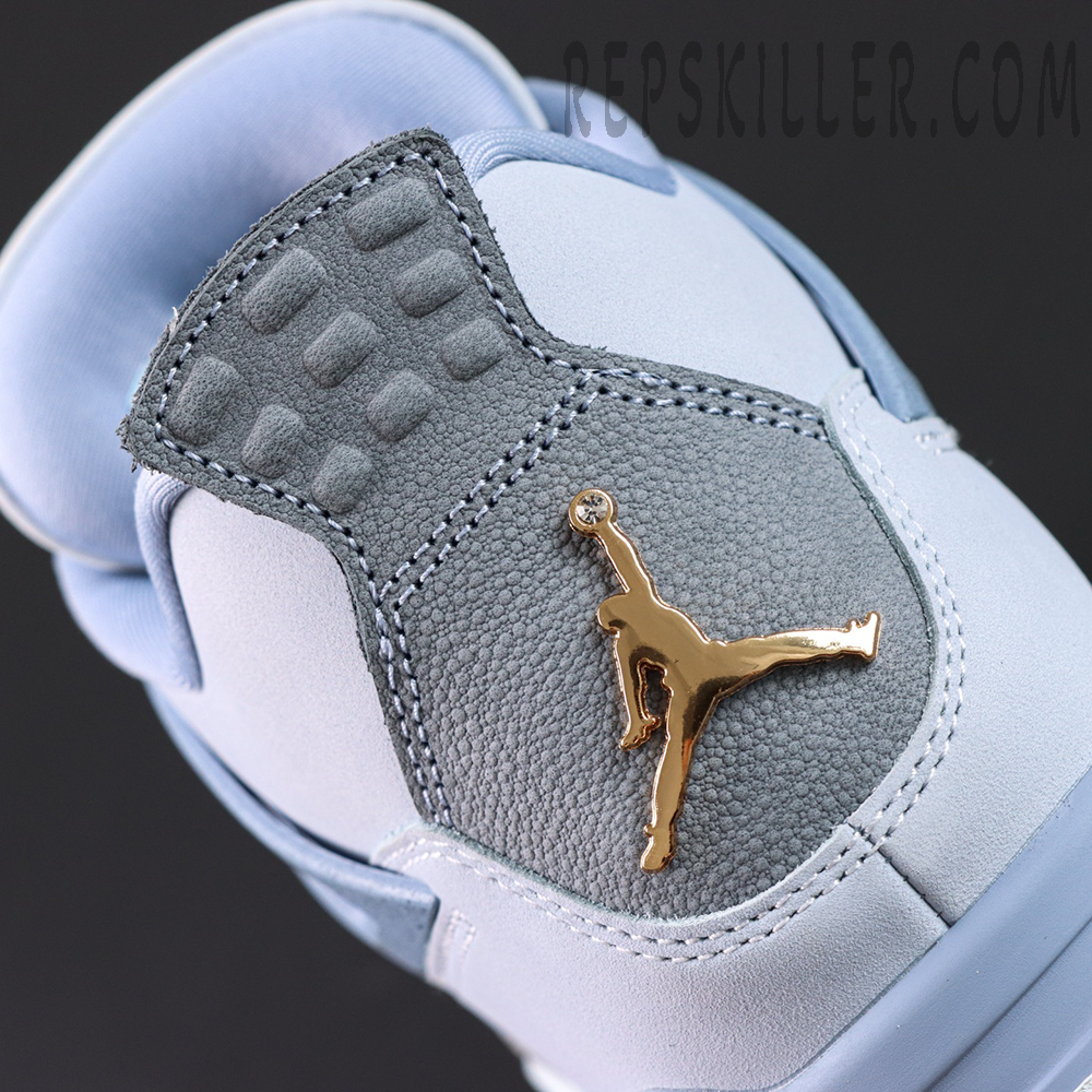 The Air Jordan 4 Retro “NCAA” 2025 reimagines the classic silhouette with a refined Tar Heels-inspired palette. Dressed in soft gradients of Carolina blue, powder grey, and ice mint, the upper blends suede and nubuck with mesh paneling for breathable structure. Gold PE detailing on the heel tab adds exclusivity, while the signature visible Air unit ensures all-day comfort. This pair delivers court-ready DNA with a lifestyle edge rooted in UNC heritage.