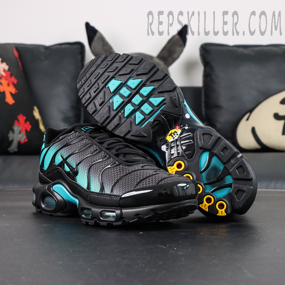 The Nike Air Max Plus ‘Black Dusty Cactus’ delivers a bold fusion of aggressive design and modern street energy, making it a standout choice for sneaker enthusiasts searching for best reps sneakers with premium detailing and comfort. This colorway refreshes the iconic Tuned Air silhouette with a dark base and vibrant teal accents, offering a perfect balance of performance and lifestyle appeal.
