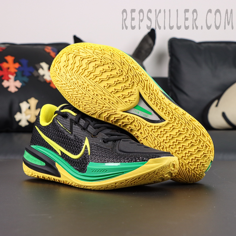 The Air Zoom GT Cut ‘Oregon Away’ PE pays homage to the University of Oregon’s elite basketball program with a colorway designed for performance and school pride. Featuring a black mesh upper for lightweight breathability, the shoe is accented by vibrant Oregon yellow and green hits across the Swoosh, liner, midsole, and outsole. A full-length Zoom Strobel unit, combined with React foam cushioning and a rear Zoom Air bag, delivers low-profile responsiveness. The rubber outsole with multidirectional tread ensures superior traction on both hardwood and blacktop.