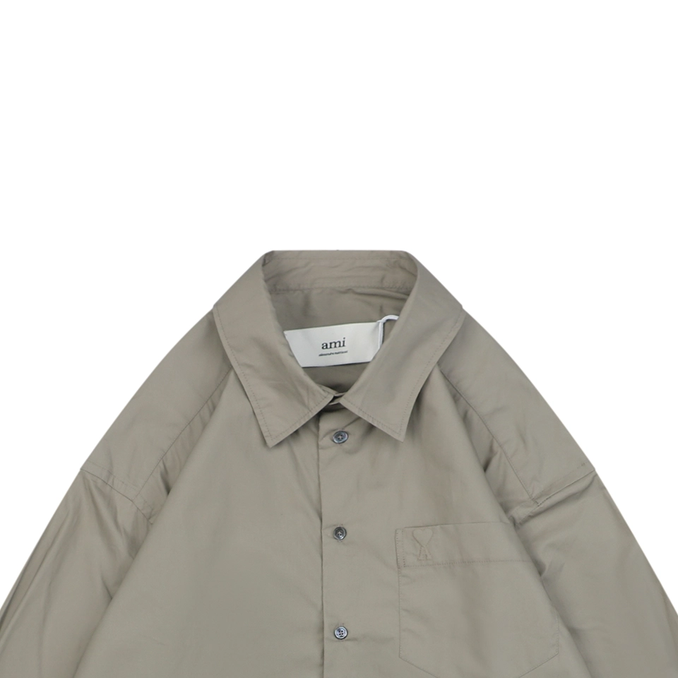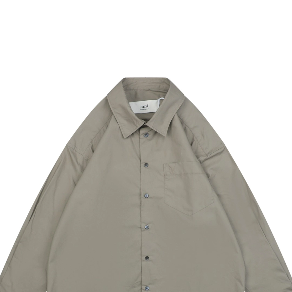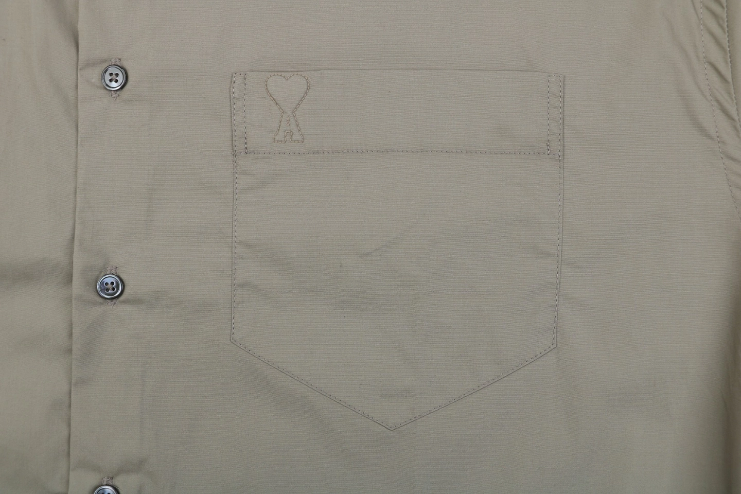 The Ami Embossed Heart Pocket Shirt is crafted from premium 40s faux-Tencel plain-weave fabric, weighing 140g and made of 100% combed cotton. The fabric is exclusively woven and dyed, refined through more than seven rounds of color matching and over two months of development to achieve the same drape, smooth touch, and airy comfort as the original.