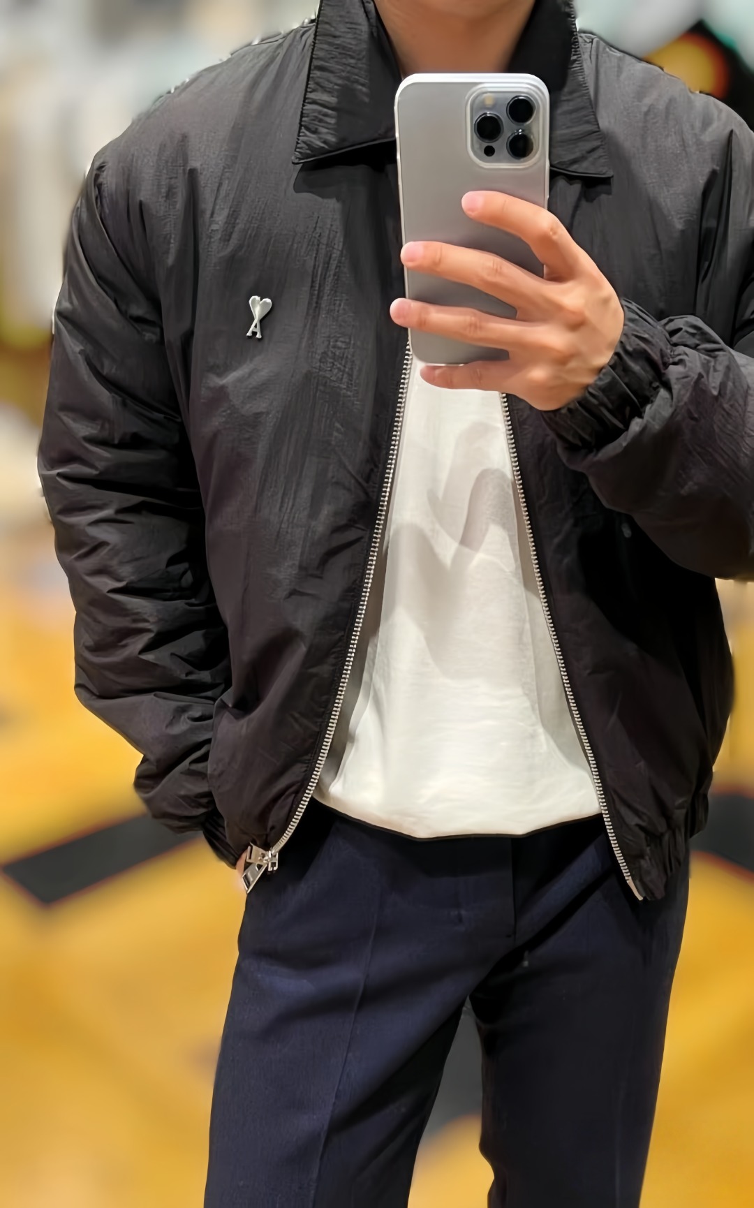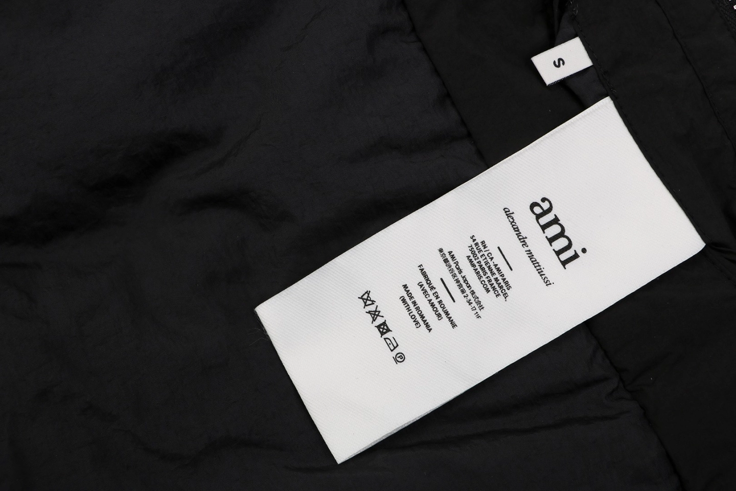 Crafted from AMI’s proprietary nylon fabric, the jacket delivers a lightweight yet durable feel with excellent breathability, elasticity, and wind resistance. The interior features a regenerated microfiber lining, offering a soft, smooth touch while maintaining warmth and comfort for everyday wear.