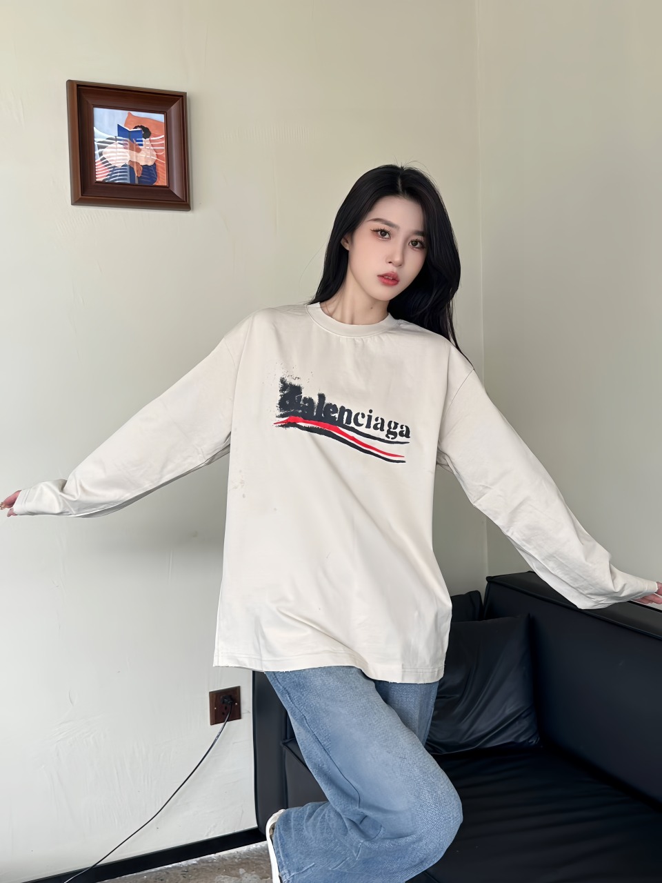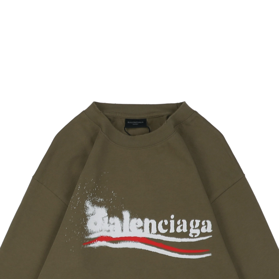 The Balenciaga Blurry Cola Graphic Shirt offers a bold streetwear interpretation with its iconic logo rendered in a distorted spray-paint effect. Crafted from soft cotton, this shirt features a relaxed fit and distressed detailing that adds a lived-in edge. Available in black, beige, and army green, it’s a statement piece blending pop culture with Balenciaga’s avant-garde design.