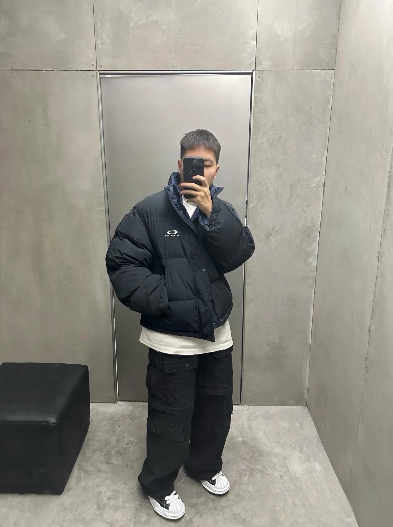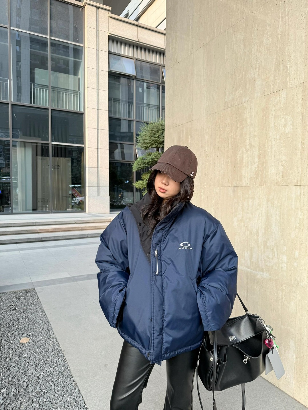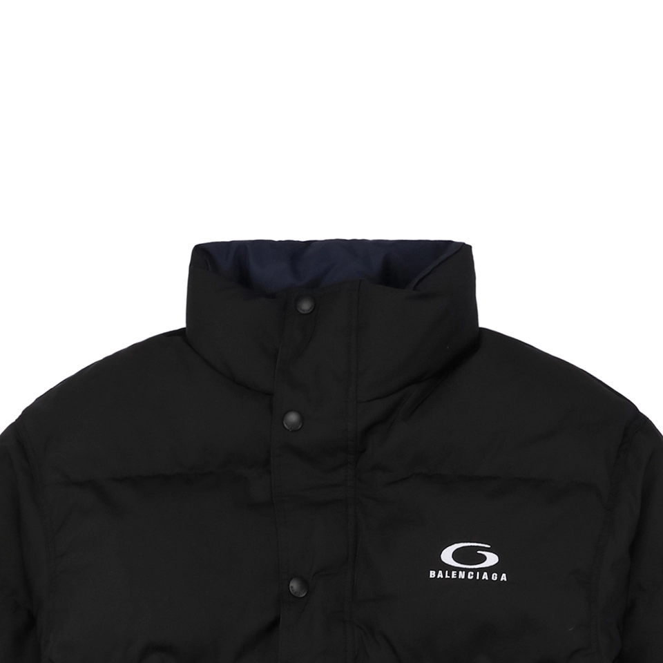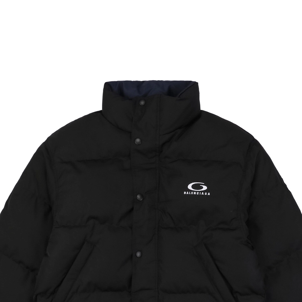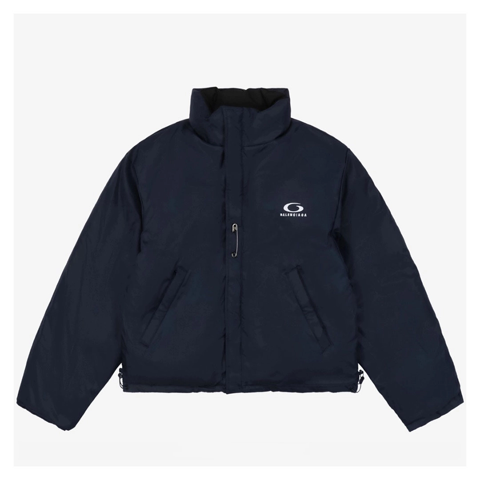 Balenciaga Reversible Puffer Jacket with Safety Pin merges versatile streetwear aesthetics with cozy winter-ready construction. One side features a matte black quilted finish, while the reverse reveals a smooth navy outer shell, both punctuated by the iconic G-logo branding at the chest. A bold metal safety pin on the navy side adds avant-garde flair, a nod to Balenciaga’s experimental edge. With its high collar, dual zip-button closure, and practical side pockets, this jacket offers functional protection against the cold while maintaining a sleek silhouette. Whether you flip it for subtle edge or bold contrast, this two-in-one jacket brings modern utility to your wardrobe.