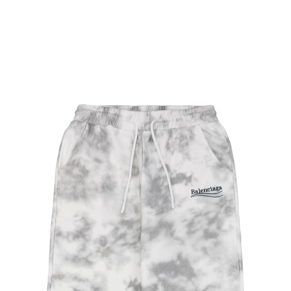 The Balenciaga Tie-Dye Embroidered Cola Logo Pants blend relaxed streetwear styling with premium craftsmanship. Featuring a distinctive cloudy tie-dye pattern across two muted colorways, these wide-leg pants are cut from soft fleece-backed cotton and equipped with a drawstring waistband and practical rear patch pocket. The subtle Balenciaga embroidery at the hip nods to vintage cola-inspired iconography, infusing the minimalist silhouette with retro flair.