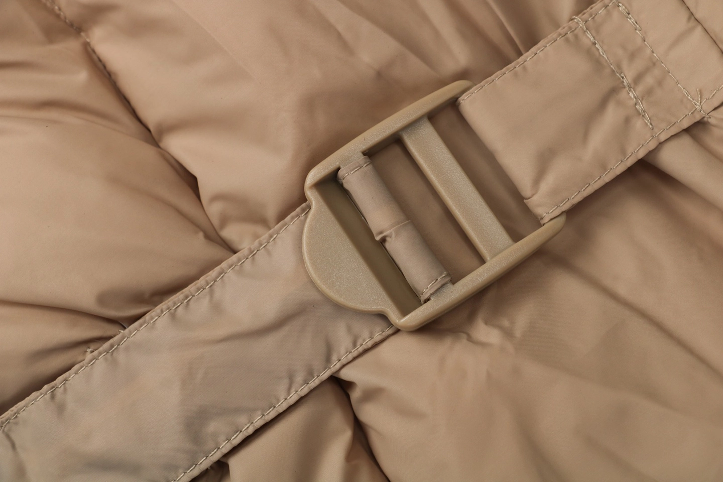 Constructed with a high-density wind-resistant nylon shell, the jacket offers a smooth texture, durability, and easy maintenance. Its structured silhouette provides a clean and streamlined appearance while maintaining excellent insulation.