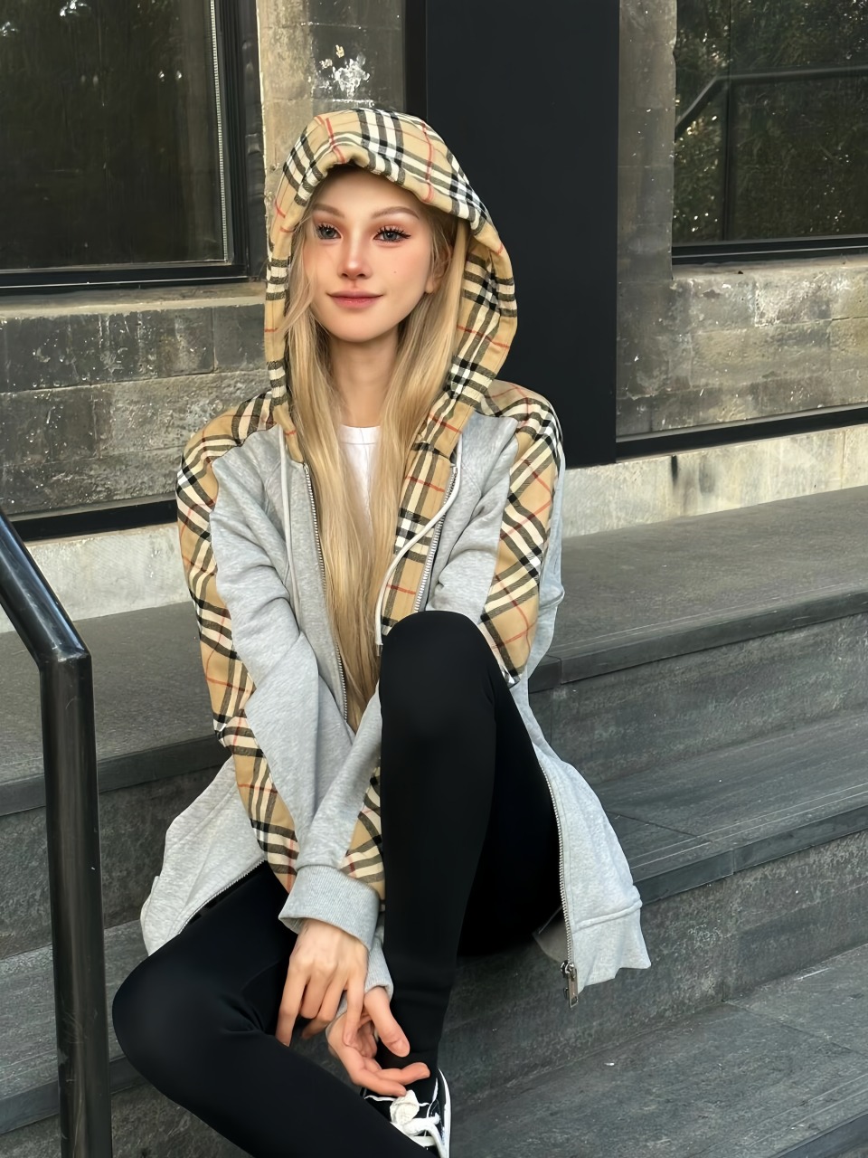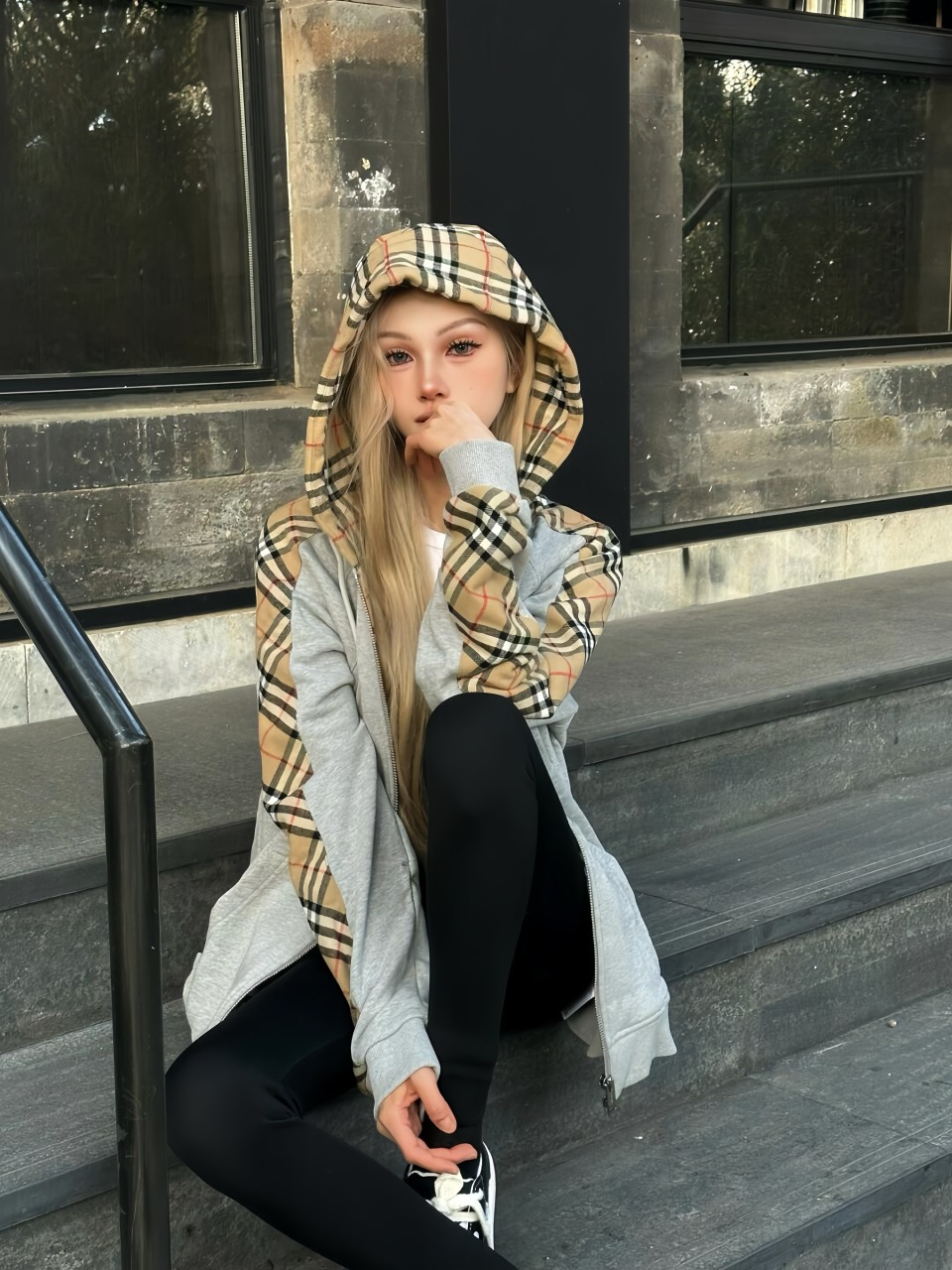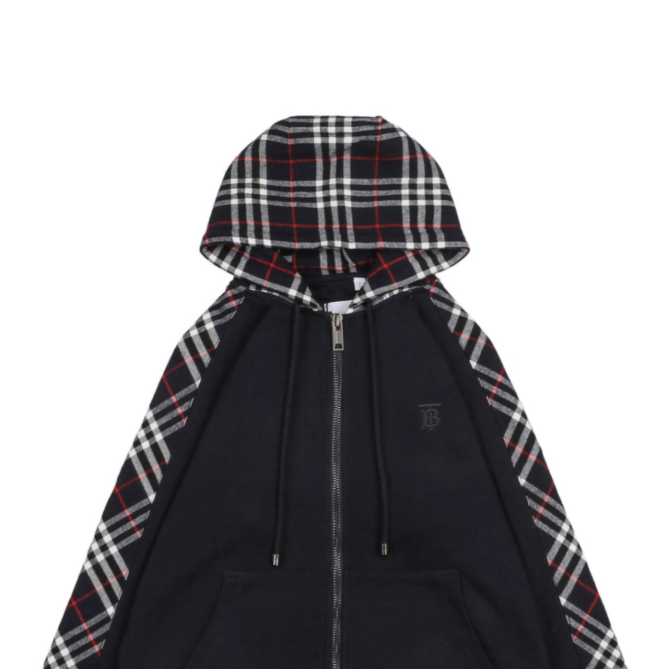 The BBry BT Embroidery Plaid Panel Zip Hoodie blends streetwear ease with elevated British design codes. Made from plush fleece cotton, it features BBry’s iconic tartan panels along the hood and sleeves. A discreet BT monogram embroidery on the chest adds a minimalist brand touch. With a front zip closure and kangaroo pockets, it offers both comfort and signature style in black and grey options.