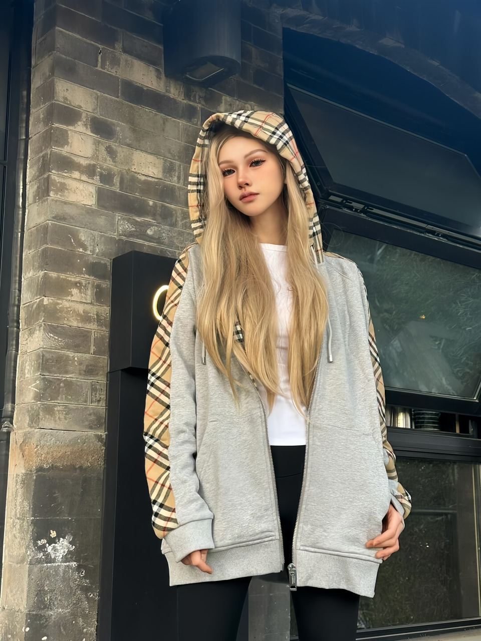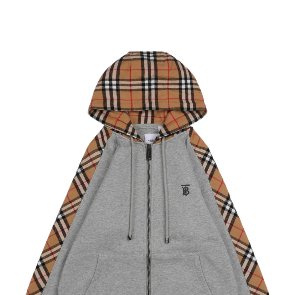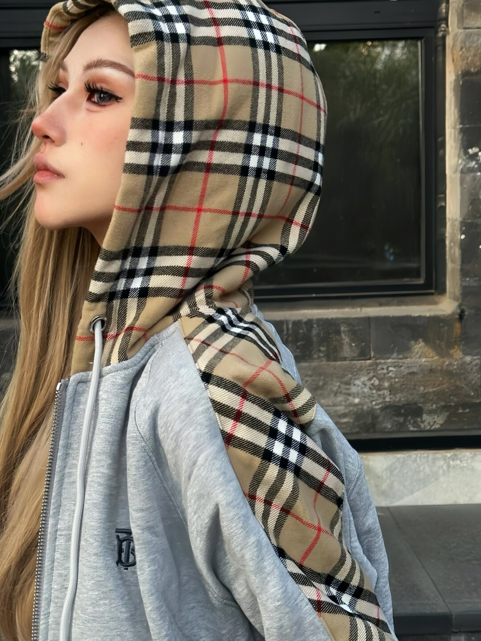 BBry BT Embroidery Plaid Panel Zip Hoodie (Grey/Black) BBry BT Embroidery Plaid Panel Zip Hoodie (Grey/Black)