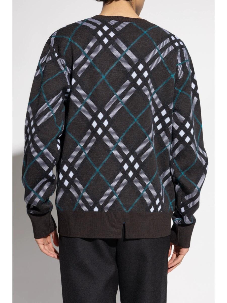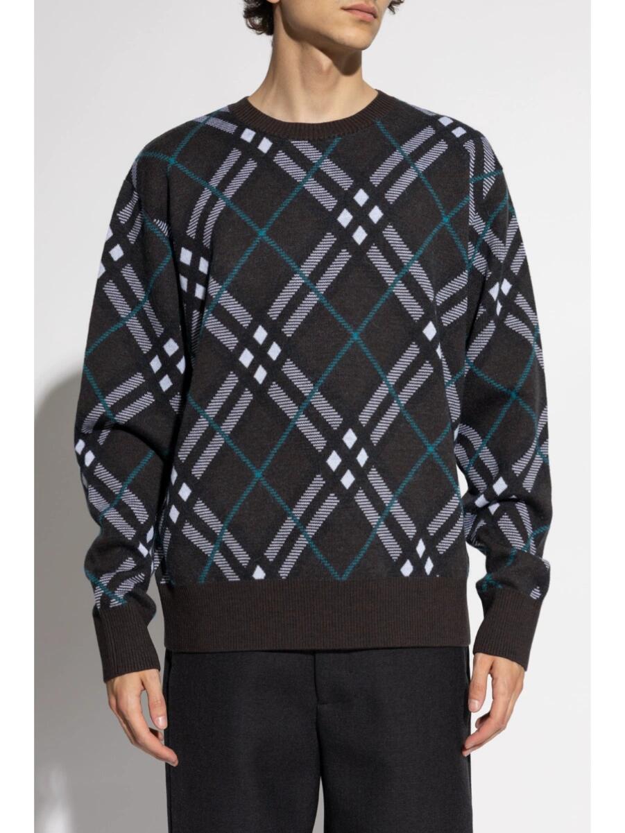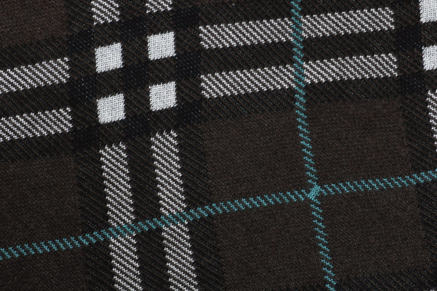 BBry Check Pattern Crewneck Sweater captures the essence of classic British fashion with a bold diagonal plaid motif in brown, black, and turquoise. Crafted from a cozy wool-blend knit, it features a ribbed collar, cuffs, and hem for a snug fit. The crewneck silhouette adds a timeless touch, making it suitable for both casual and elevated ensembles. A soft hand feel and structured weight ensure both warmth and style throughout the season.