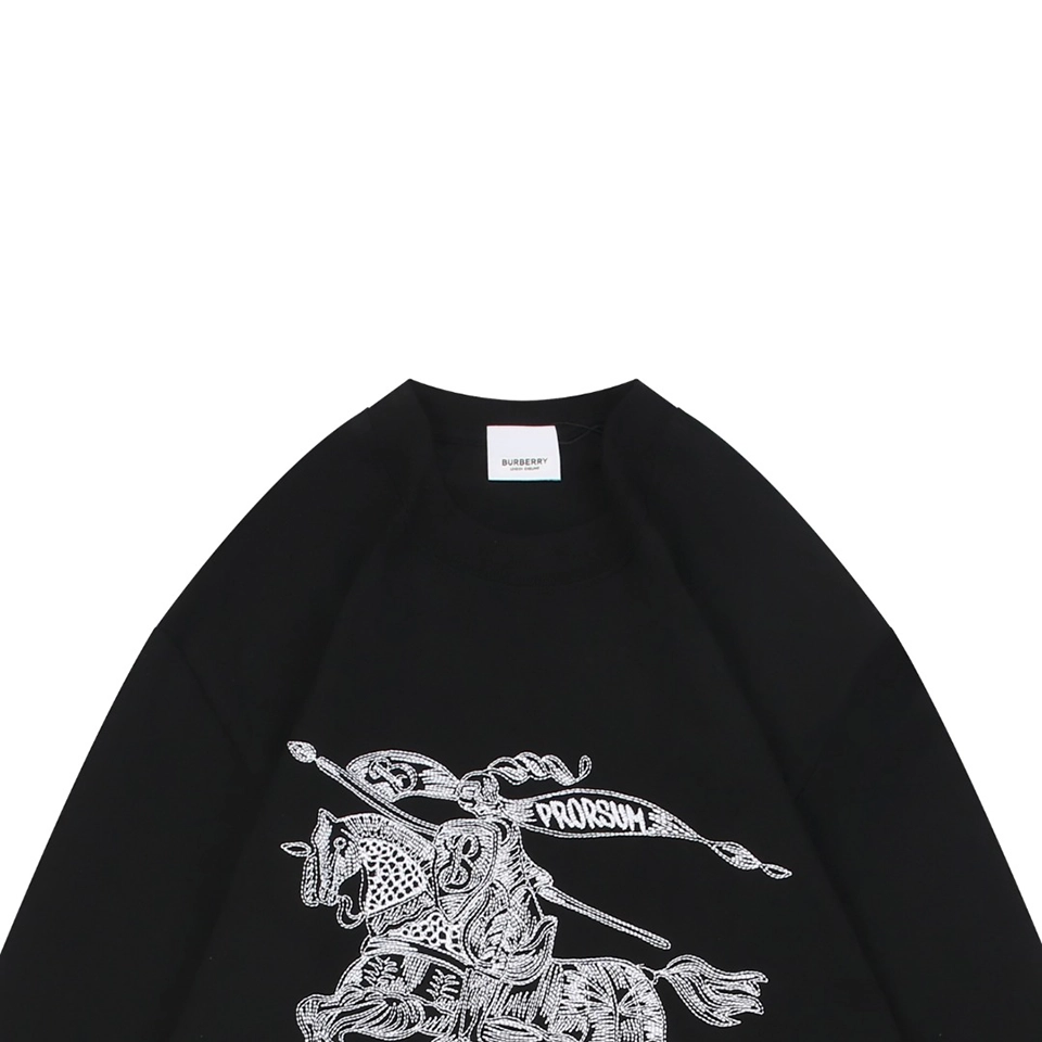 The BBry Equestrian Knight Fine-Line Embroidery Shirt features an intricate, fine-line embroidered depiction of BBry’s iconic Equestrian Knight motif across the chest. Crafted from soft, premium cotton, this long-sleeve tee offers a smooth and breathable feel while maintaining a structured silhouette. The minimal back and clean neckline further enhance its refined look, making it an effortless staple for everyday wear. Available in classic black and white, this piece blends heritage design with modern simplicity—ideal for those who appreciate subtle luxury and timeless branding.