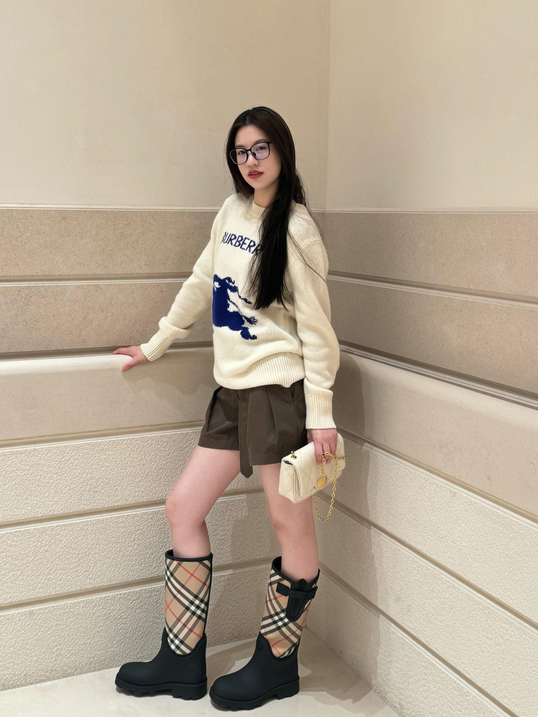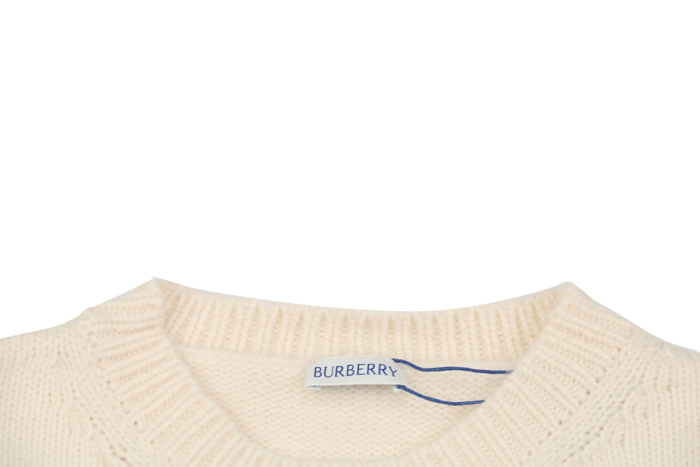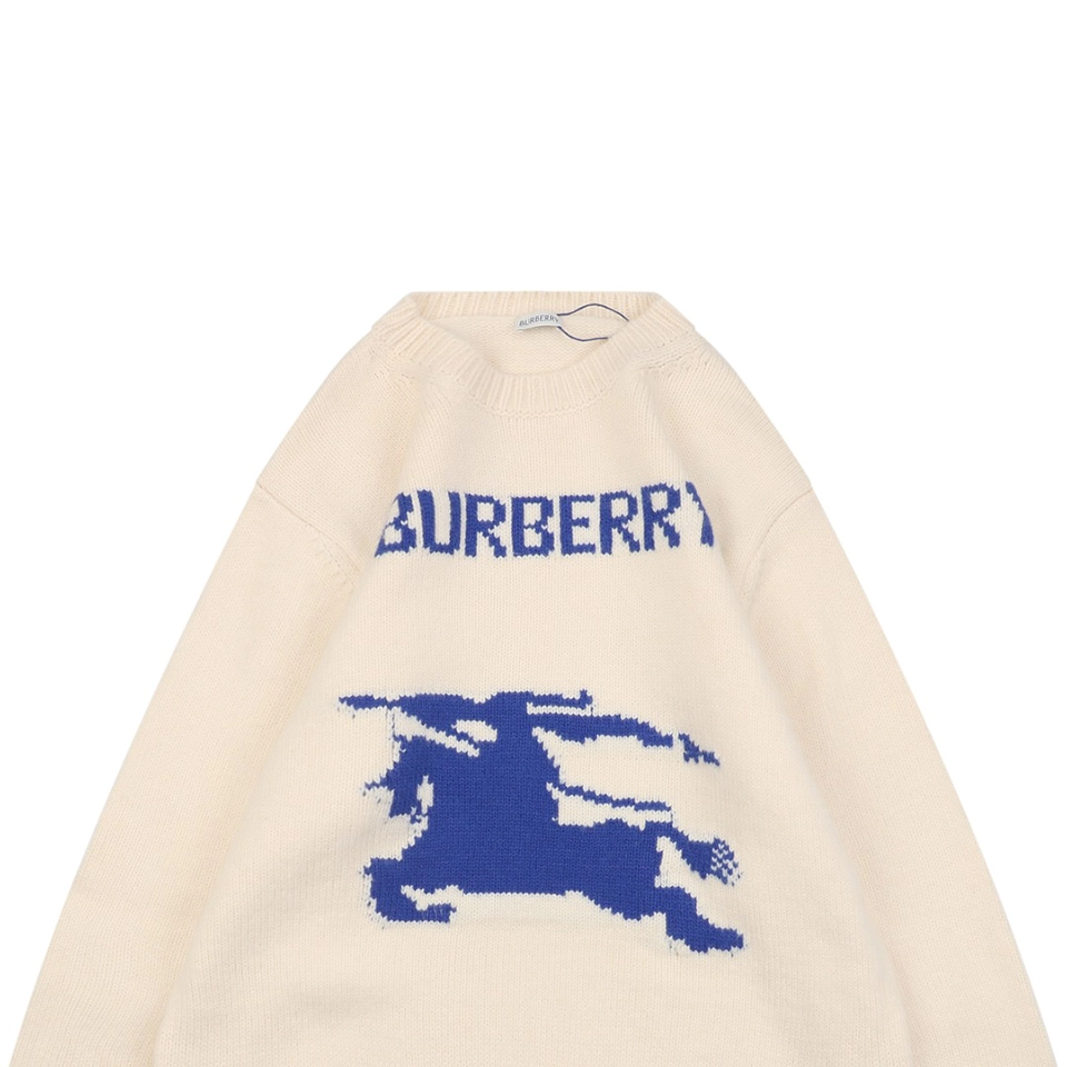 The BBry Horse Logo Wool Knit Sweater returns in a clean cream base with a vivid blue jacquard, elevating its signature knight motif. Spun from a plush wool blend, this sweater merges warmth with a fashion-forward statement. Finished with ribbed trims and a relaxed silhouette, it effortlessly bridges classic British iconography and modern street aesthetics.