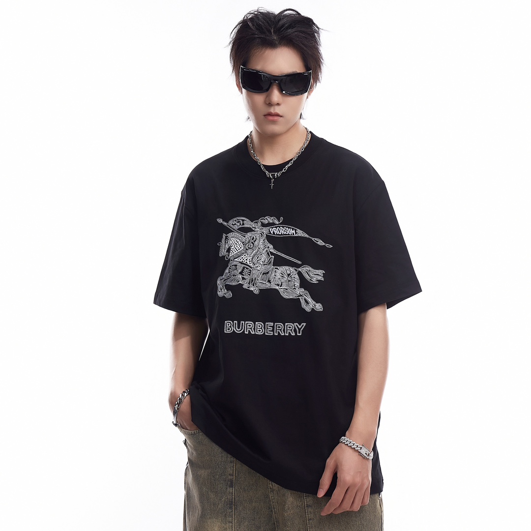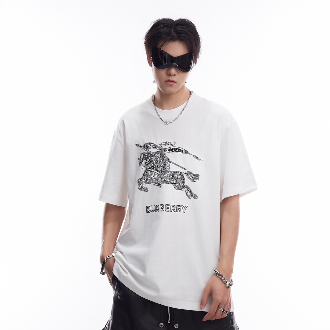 The BBry Large Equestrian Knight Logo Embroidered Washed Cotton T-Shirt delivers a bold take on the brand’s iconic identity.