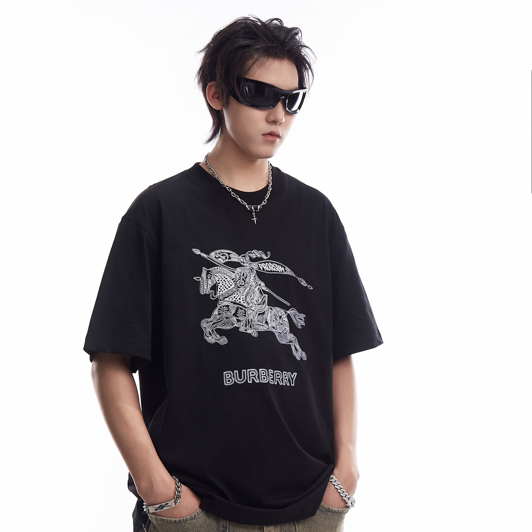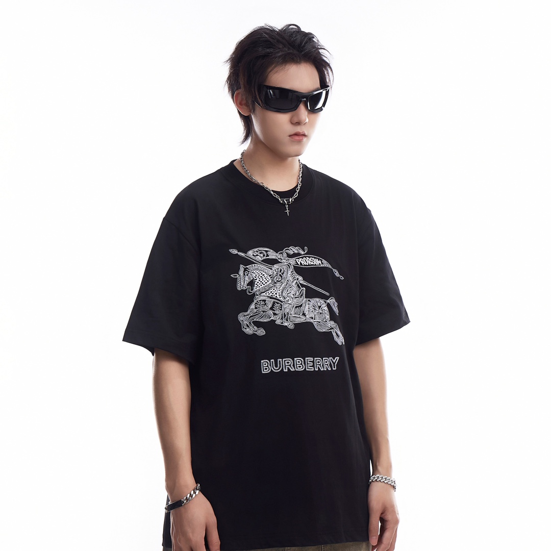 The front features an oversized Equestrian Knight motif paired with BBry lettering, rendered in detailed embroidery for a refined yet impactful look. The clean linework highlights the heritage design while adding depth and texture.
