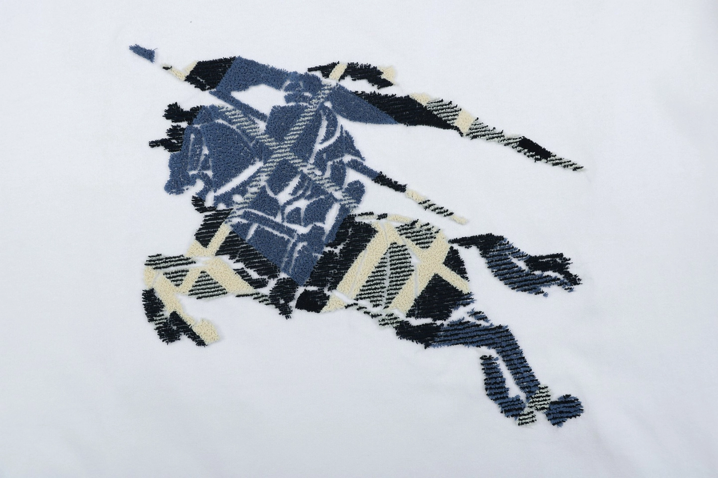 The BBry Multicolor Knight Brushed Embroidery Shirt is crafted from soft premium cotton and features the iconic Equestrian Knight recreated through multicolor brushed embroidery. This layered stitch technique gives the design a textured, deconstructed look while maintaining a clean, versatile silhouette that elevates everyday styling with BBry’s signature heritage touch.