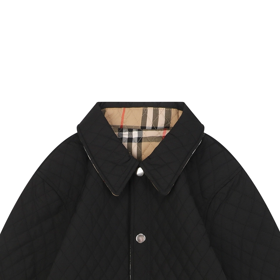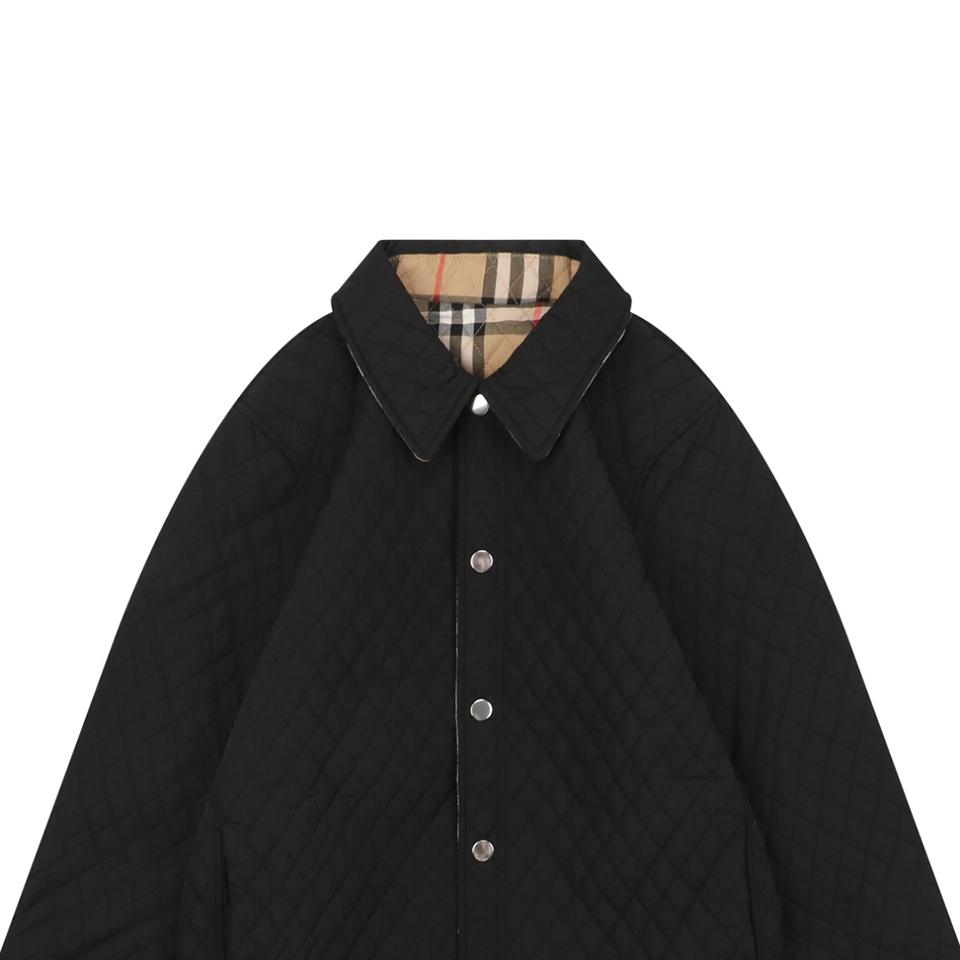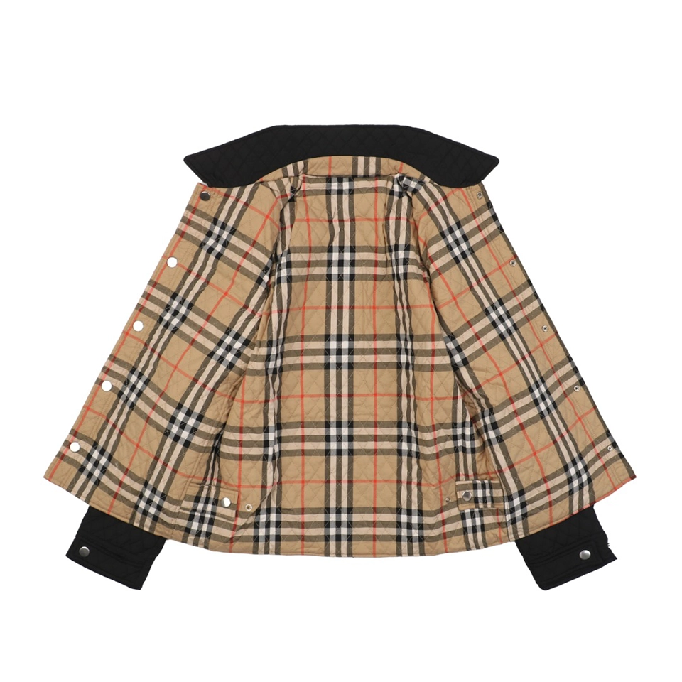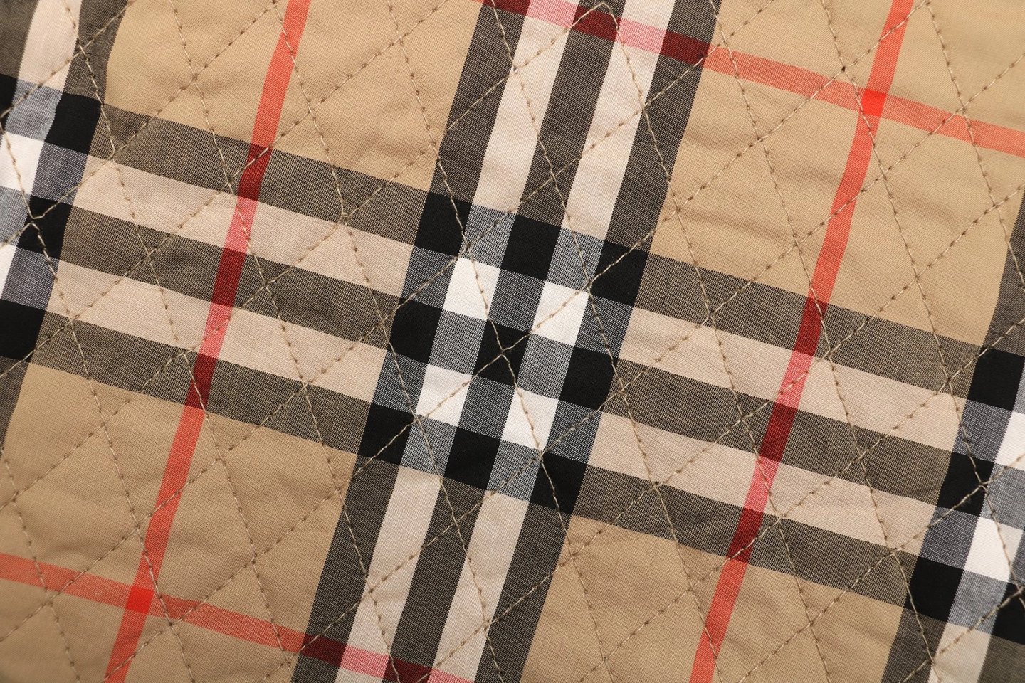 The BBry Reversible Quilted Check Jacket features the brand’s iconic Vintage Check pattern, enhanced with refined mini diamond quilting for a classic and timeless British look. The jacket is filled with lightweight padding that provides warmth without bulk. Custom-molded BBry logo snap buttons and fully replicated original trims ensure premium finishing details. With its reversible design, this jacket offers two distinct styling options, making it versatile for daily commuting and casual wear.