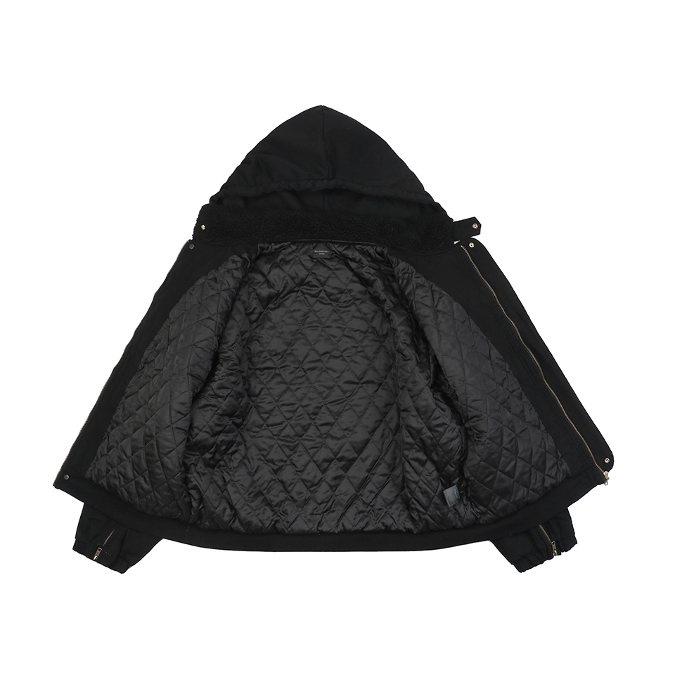 A dual-layer back panel paired with quilted silky lining creates an effective thermal barrier, ensuring warmth while maintaining breathability. Its oversized silhouette offers an effortless unisex fit, suitable for all body types. With up to 5.5 meters of fabric used per jacket and a production cycle of three months, this piece embodies high craftsmanship and exceptional construction difficulty.