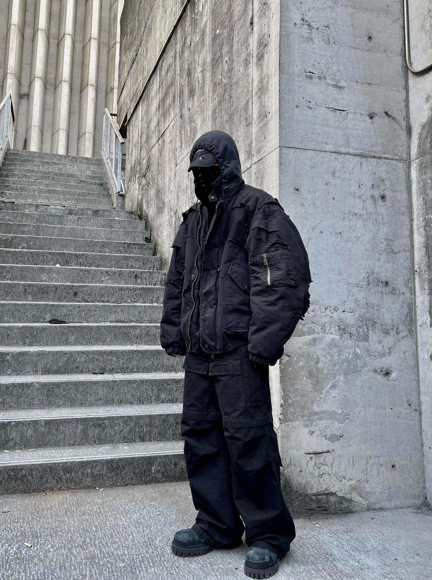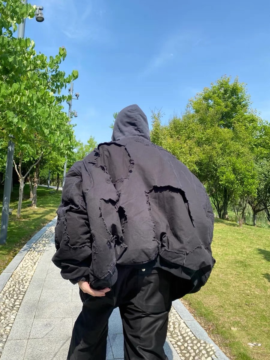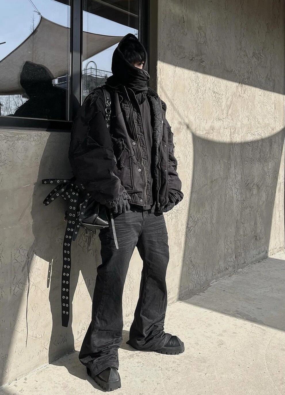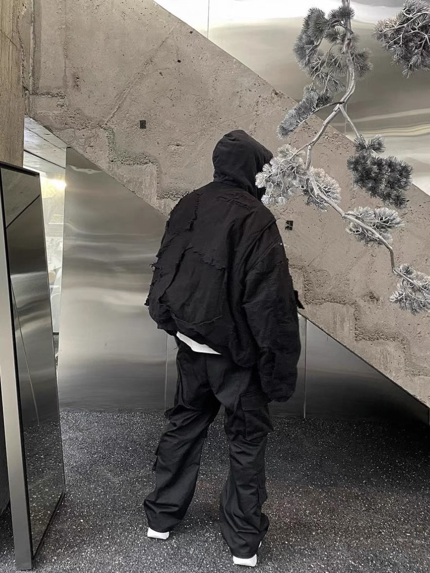 Finished with multiple functional pockets and custom Blcg hardware tags, this jacket merges experimental design with practical everyday utility—perfect for layering in fall and winter.