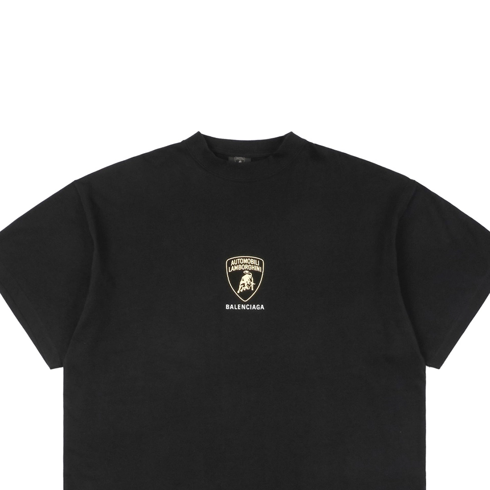 The chest showcases a small-scale Lamborghini-inspired logo print, executed with a platinum heat-pressed technique. This process involves base layering and high-temperature alignment pressing, resulting in sharp detailing, consistent color, and a subtle premium sheen.