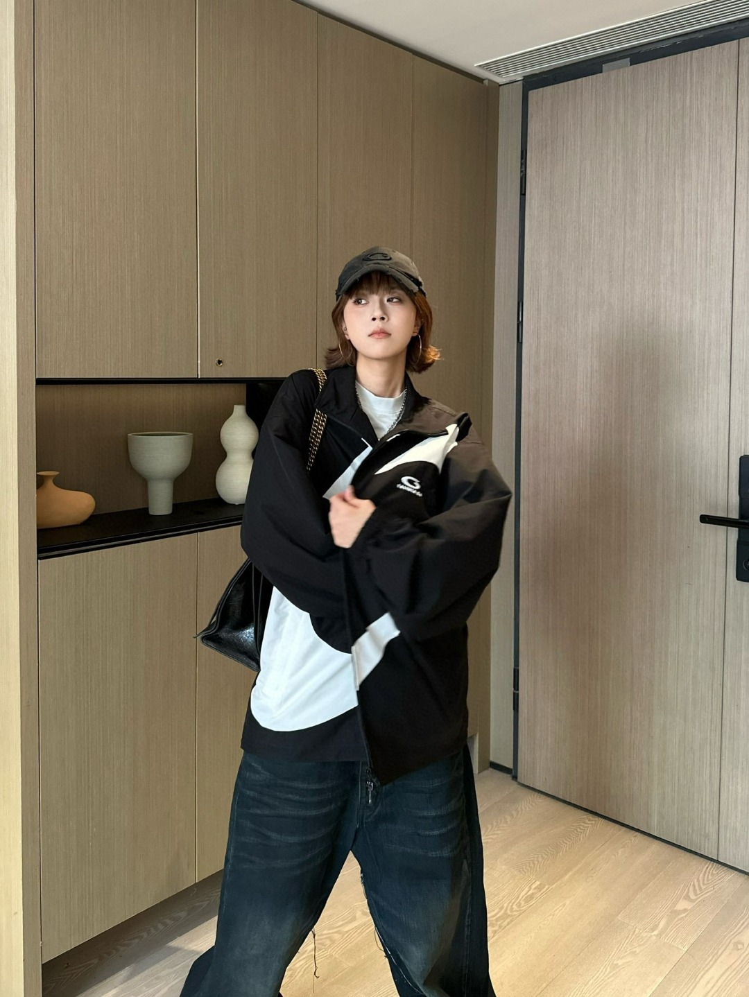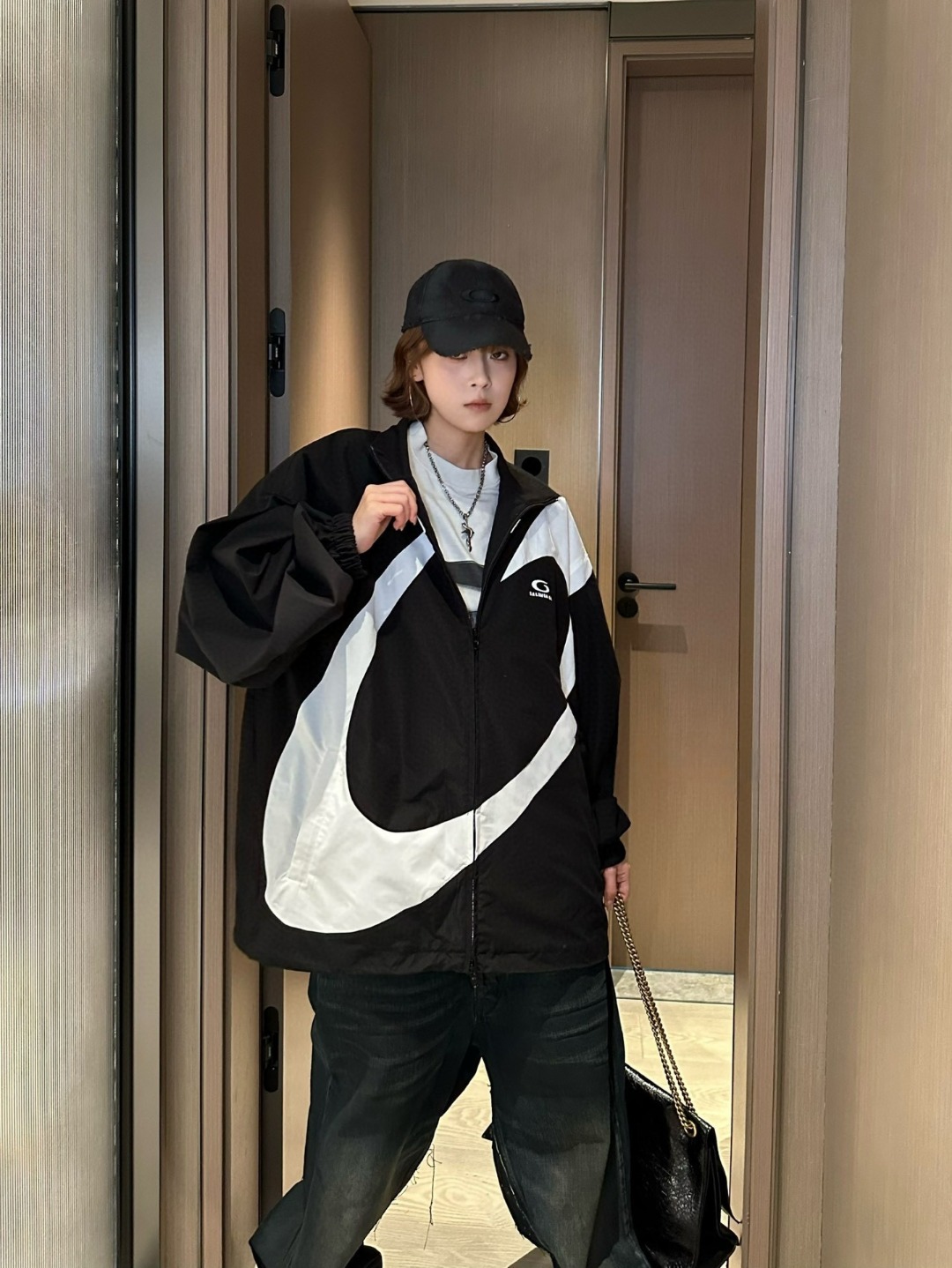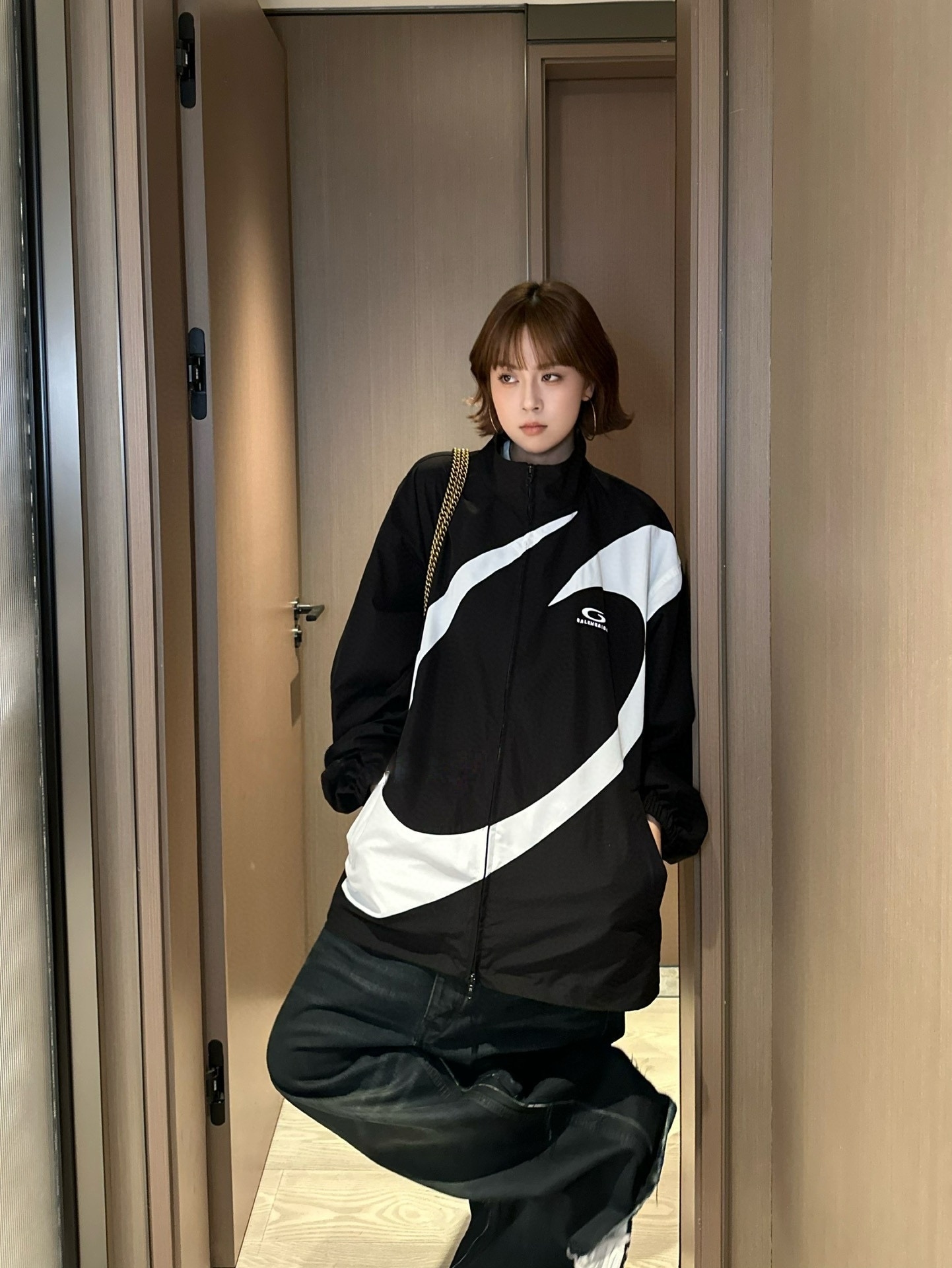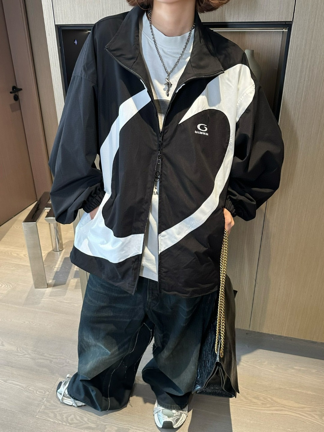 The Blcg Oversized Circular Panel High-Neck Jacket features a bold, graphic design highlighted by an oversized circular contrast panel, delivering a strong visual statement rooted in contemporary luxury streetwear. The structured high-neck silhouette and relaxed proportions reflect Blcg’s signature avant-garde aesthetic, making this piece a standout option for modern urban styling.