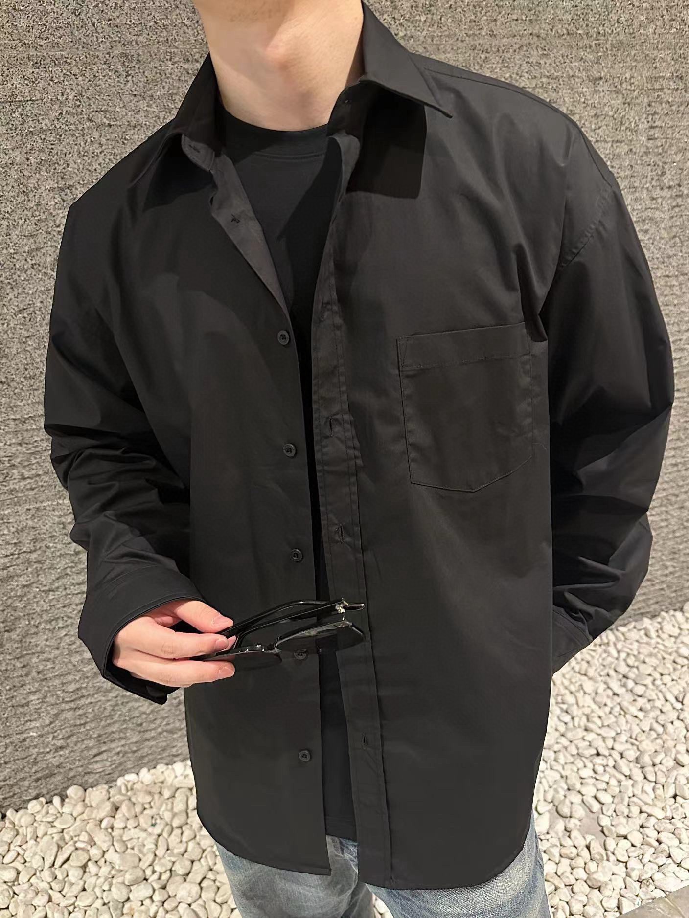 Featuring a classic button-down collar, chest pocket, and relaxed oversized cut, the shirt balances minimalism with statement branding. The slightly curved hem enhances layering possibilities, making it easy to pair with jeans, tailored trousers, or streetwear staples.