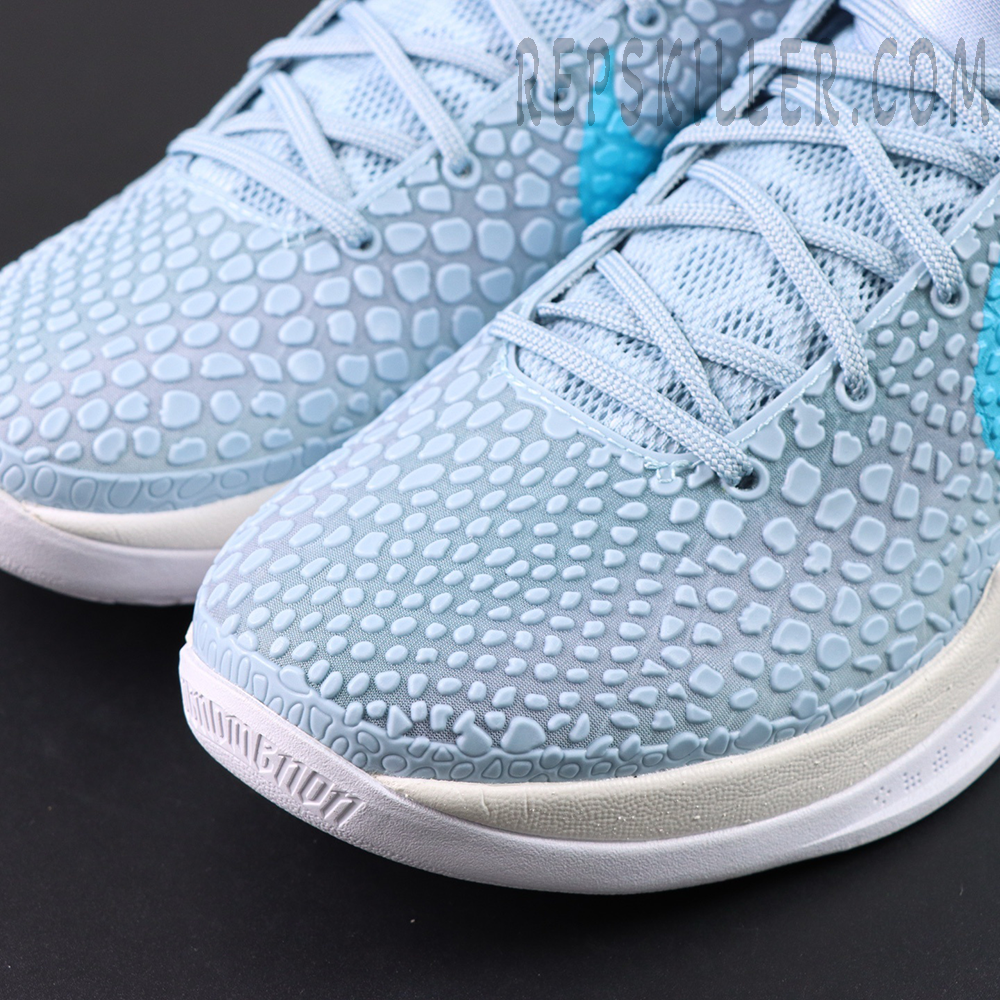 The Caitlin Clark x Nike Zoom Kobe 6 Protro ‘Light Armory Blue’ introduces a PE-exclusive colorway honoring the WNBA All-Star. Inspired by Kobe Bryant’s ‘Black Mamba’ legacy, the sneaker’s scaly upper mimics snakeskin with molded polyurethane islands over breathable micro-mesh in tonal blue hues. A bold aqua Swoosh and Kobe’s shield logo on the tongue reflect signature detailing. Underfoot, a Cushlon midsole houses a forefoot Zoom Air unit, ensuring elite responsiveness and comfort on court. Lightweight, performance-tuned, and visually striking — this Protro pays homage to greatness past and present.