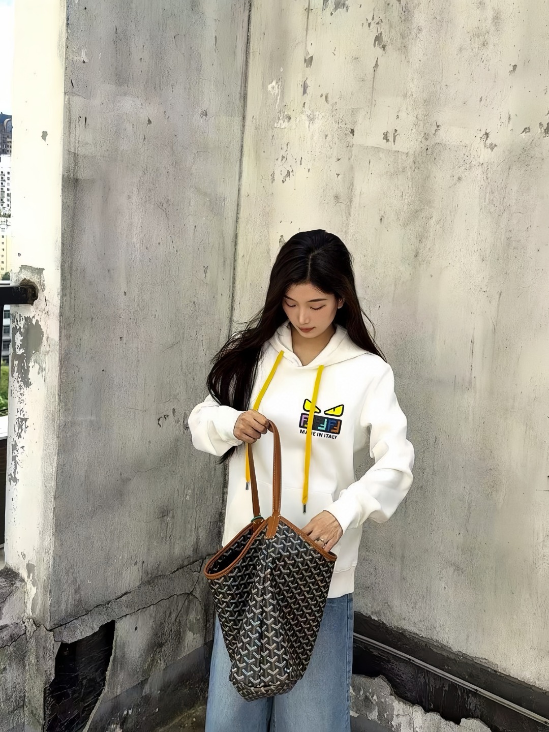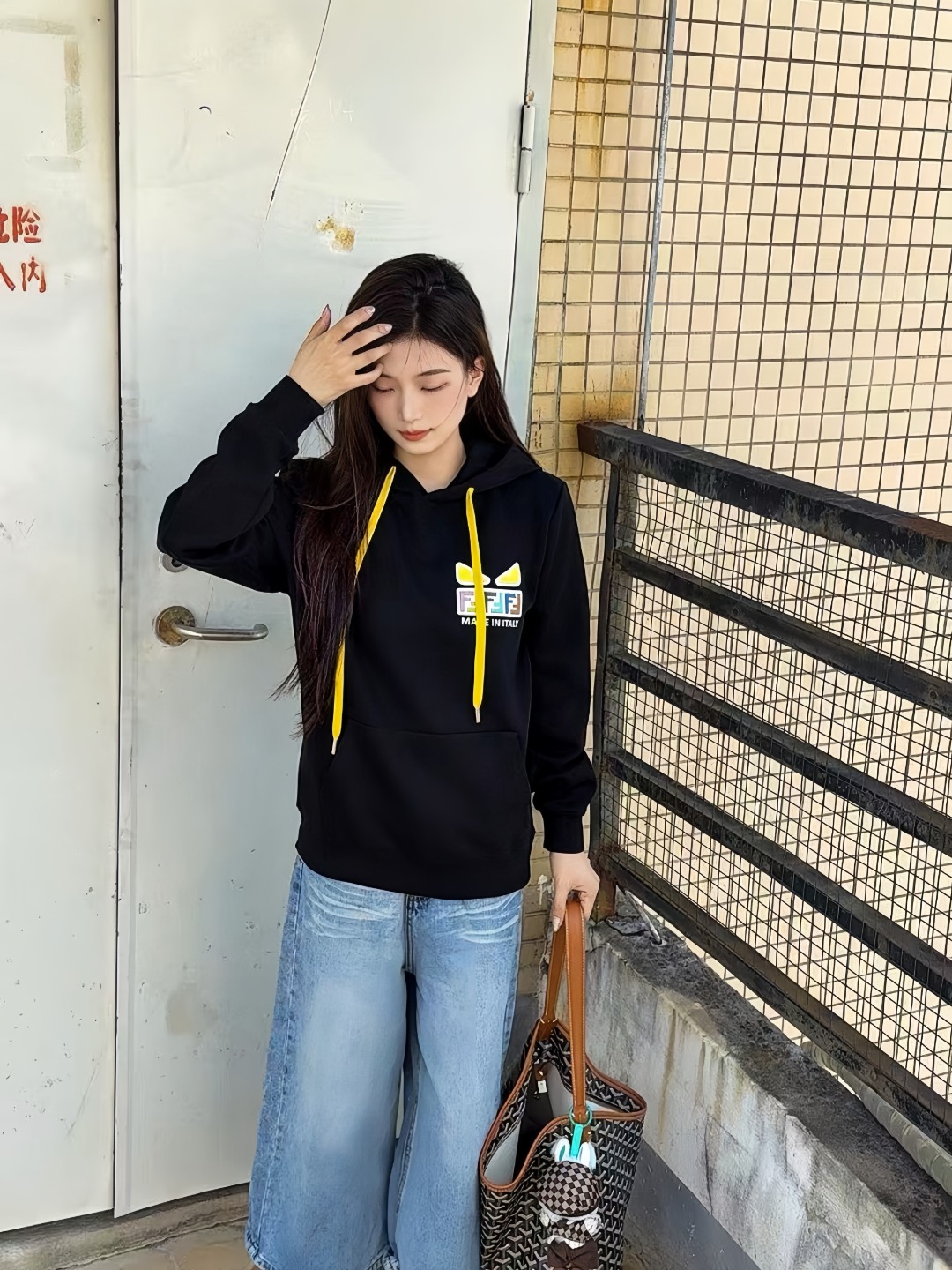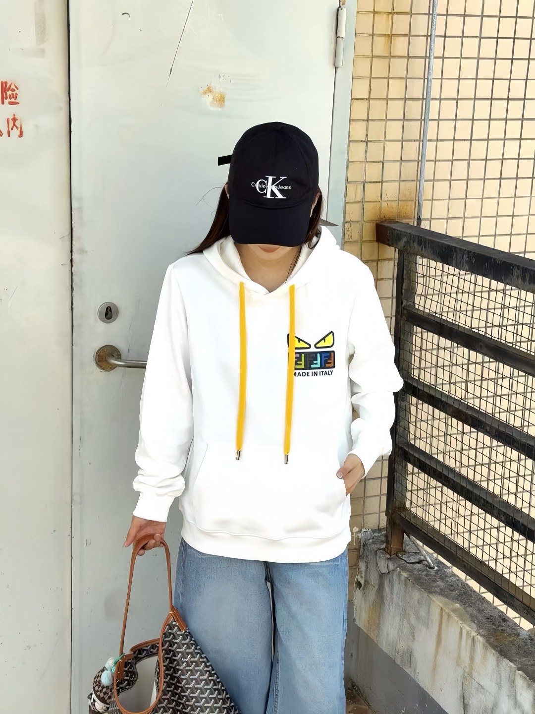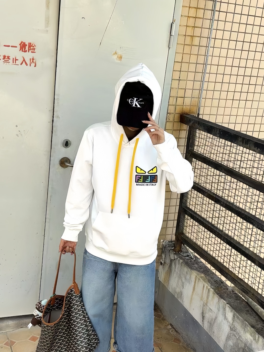 The F Multicolor Monster Eyes Flocked Logo Hoodie presents a playful twist on a classic streetwear silhouette. Featuring the iconic monster eyes motif on the chest, paired with a multicolor “F” logo and “Made in Italy” lettering, this hoodie radiates energy and personality. The flocked print adds a velvety texture that enhances the visual contrast, while bold yellow drawstrings provide a sharp accent. Available in clean white and jet black options, this hoodie is constructed from soft cotton fleece for lasting comfort and warmth.
