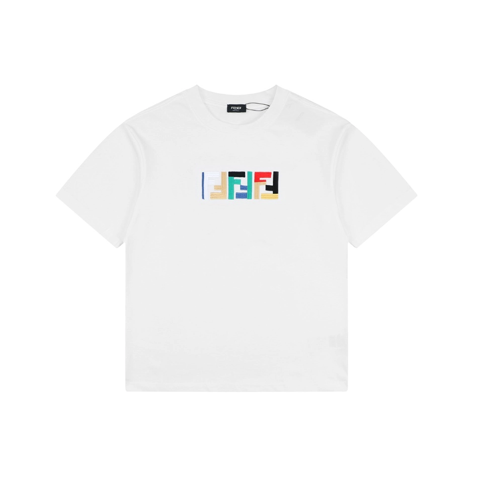 The FD Multicolor FF Embroidery Cotton T-Shirt combines bold branding with premium craftsmanship.