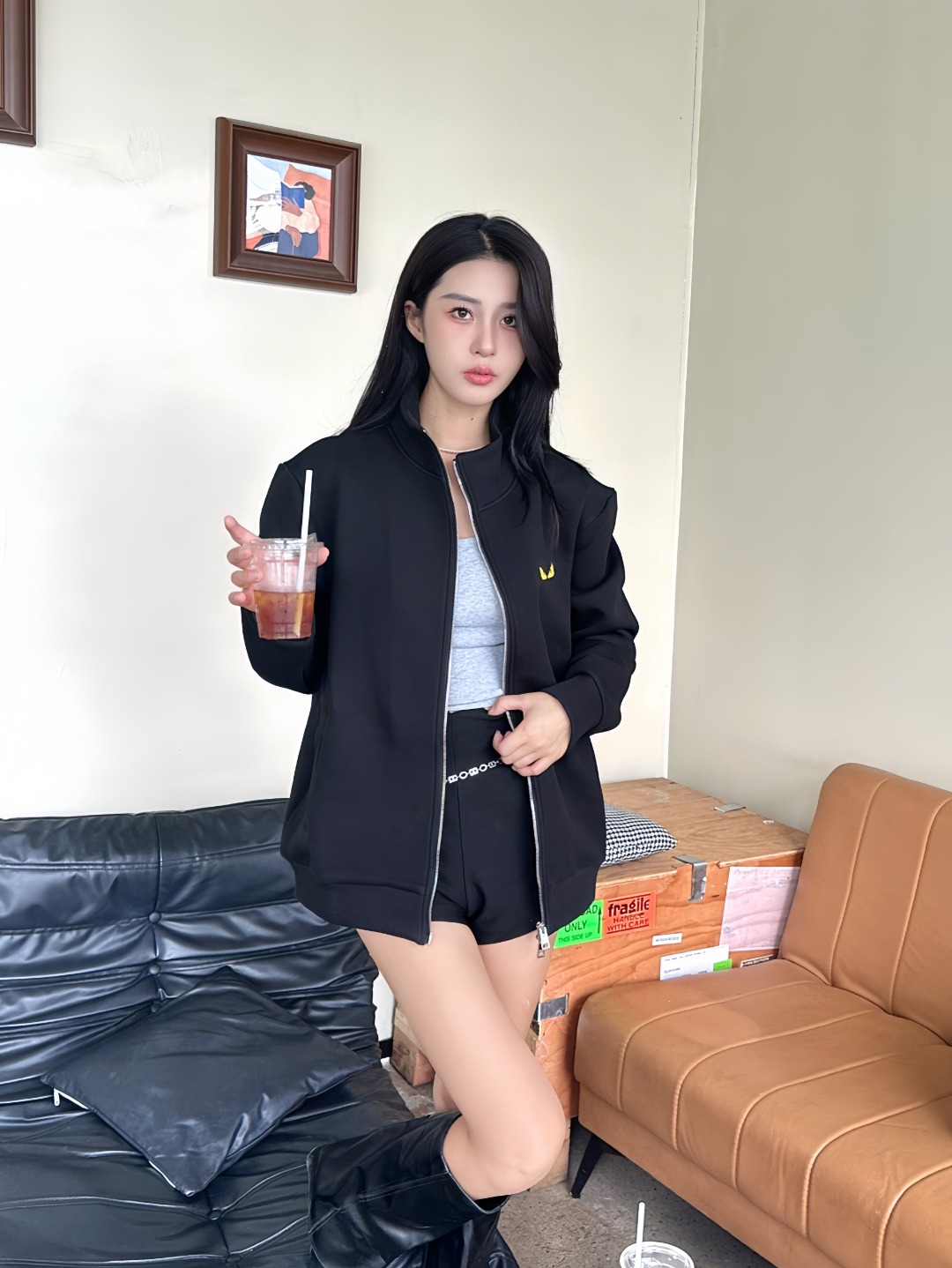 The F Monster Eyes Air Cotton Hooded Jacket is crafted from custom-developed air cotton fabric, precisely dyed using a same-bath dyeing process to ensure even coloration and long-lasting color stability. The material offers a soft, smooth hand feel while maintaining excellent structure and durability, making it ideal for fall, winter, and transitional seasons.