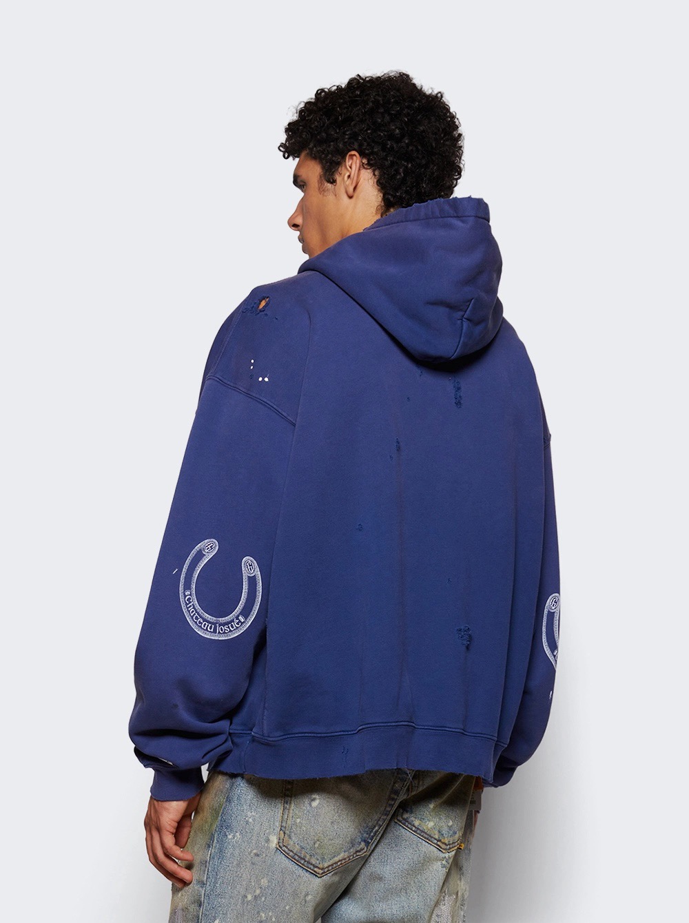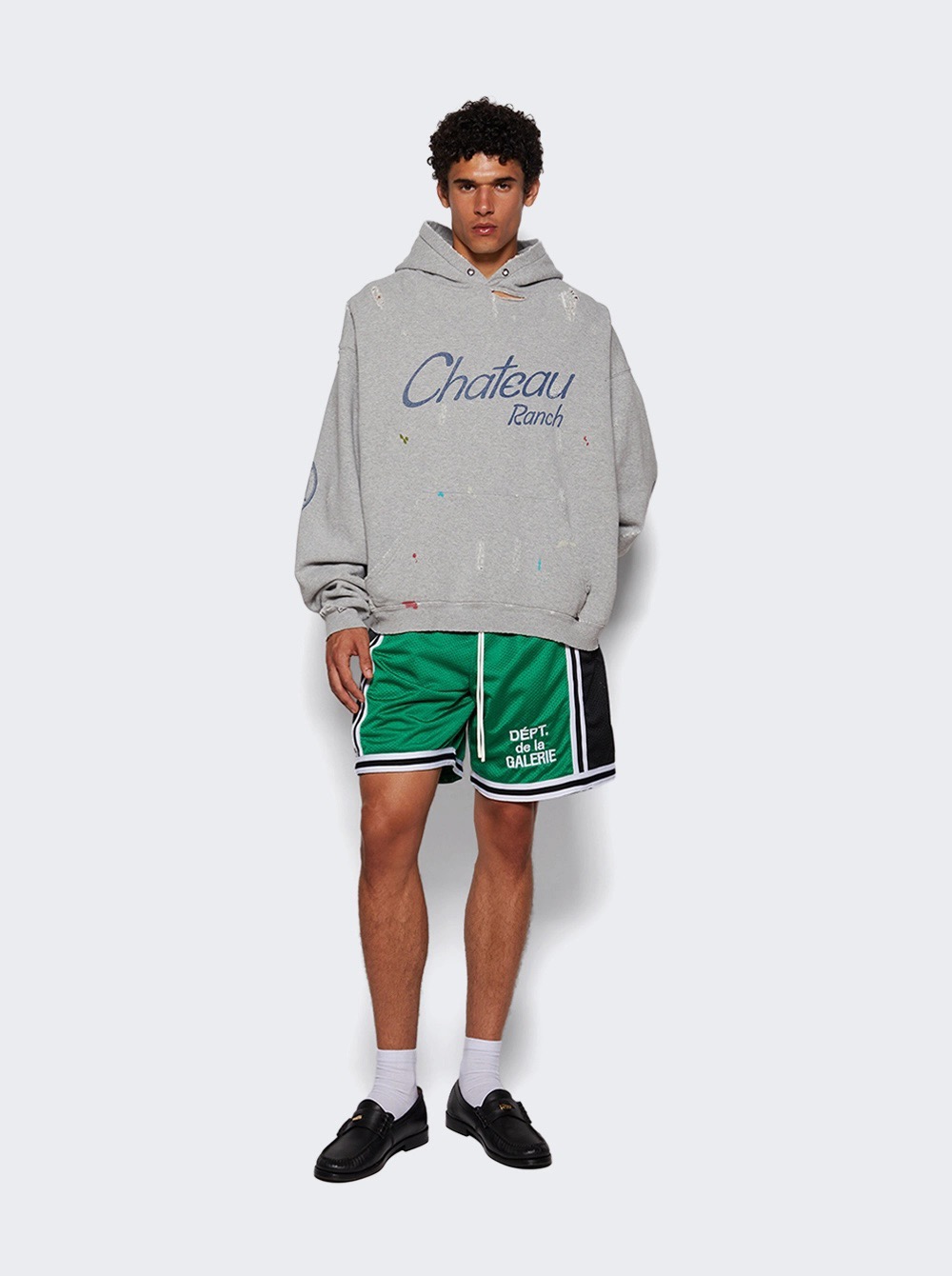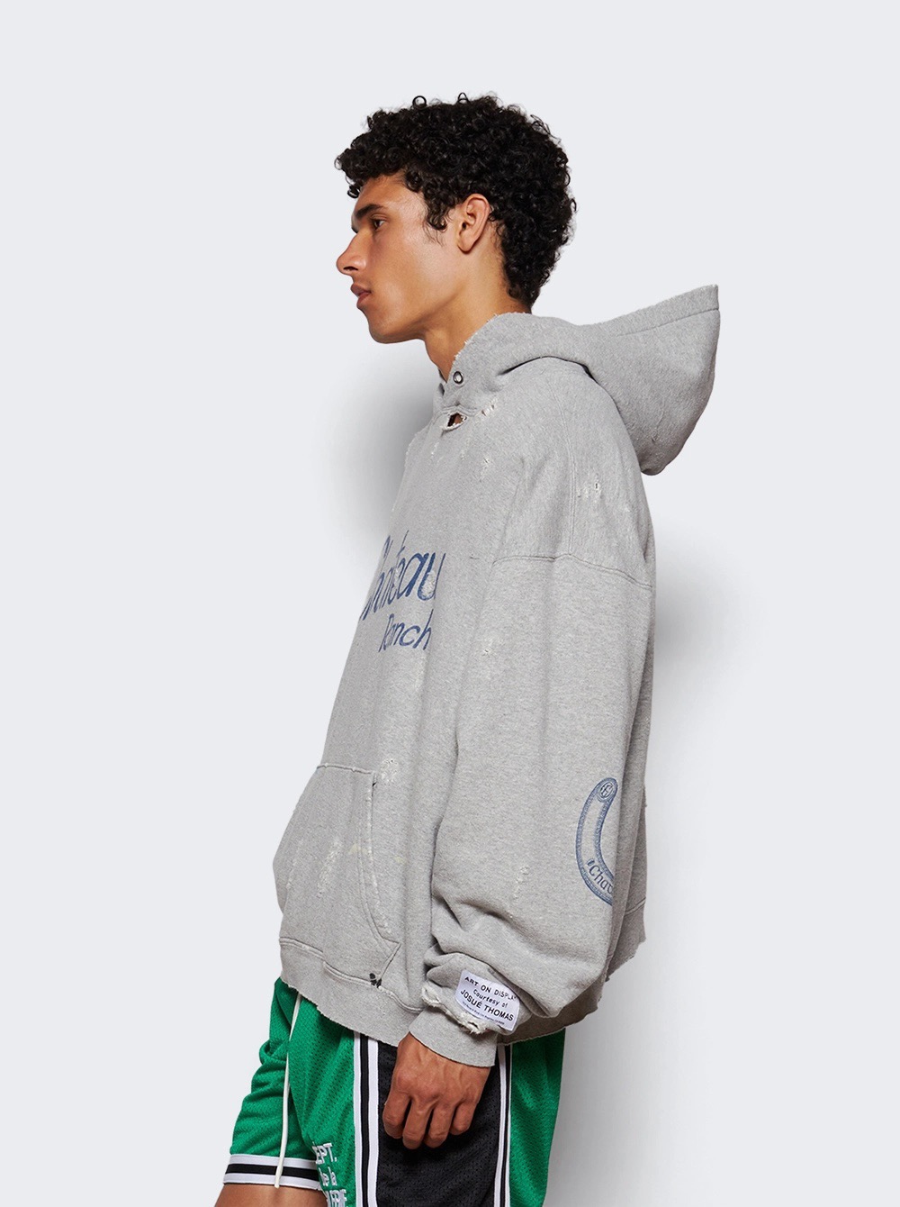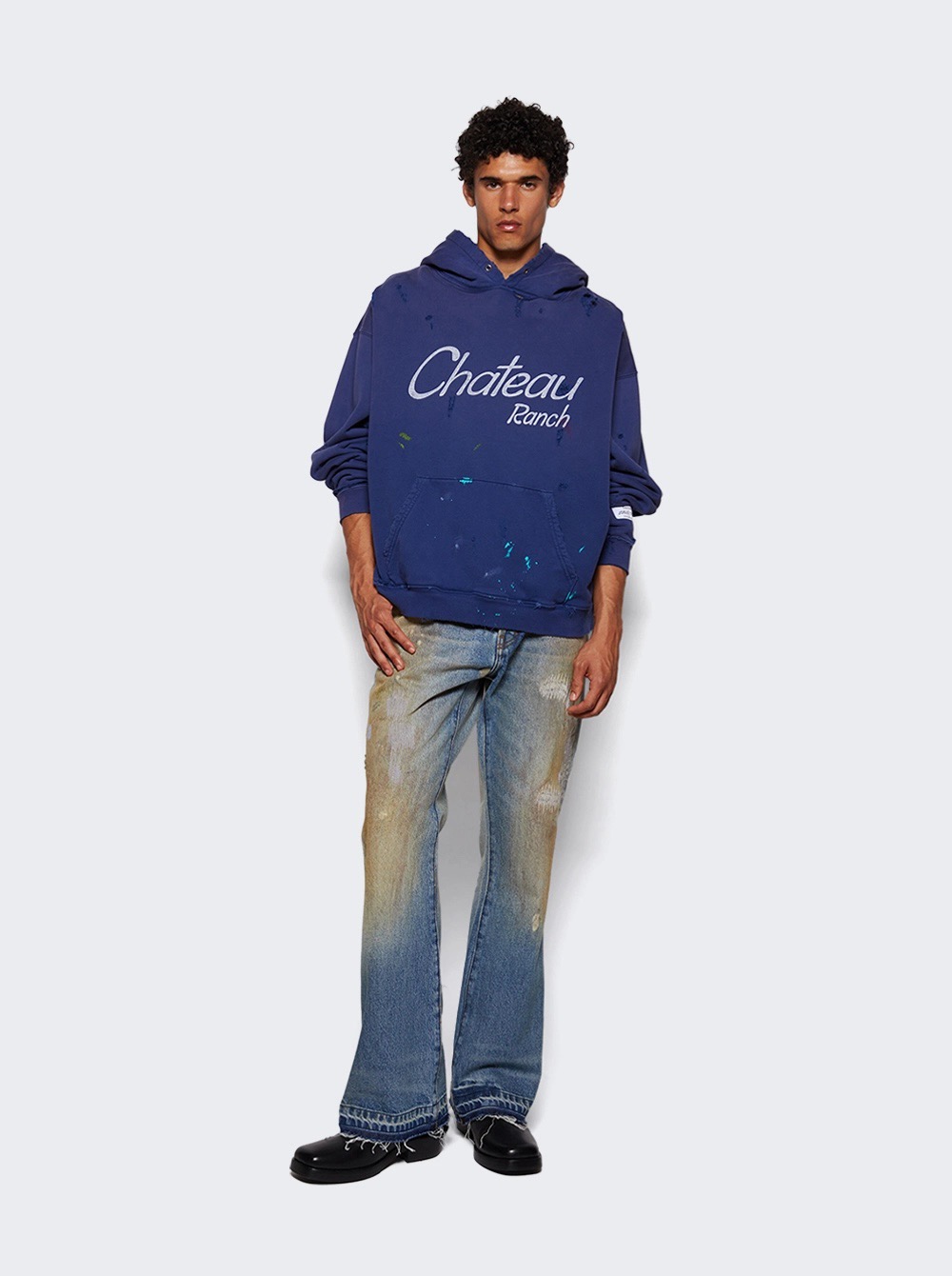 The Gallery Dept Chateau Ranch Distressed Hoodie is crafted using Asutte reactive dye and goes through a series of intricate vintage-processing steps, including monkey-wash fading and post-dye aging, resulting in a richly layered, authentically worn-in appearance. Each hoodie is individually hand-finished with paint splatter, abrasions, cuts, and wormhole distressing, making every piece truly one of a kind. The signature boxy cropped silhouette stays faithful to the original design. Finished with original-style main labels and wash tags, the details are highly accurate. Front and sleeve graphics are printed using premium-grade techniques and then washed down for a naturally aged, vintage look that only becomes better with time.