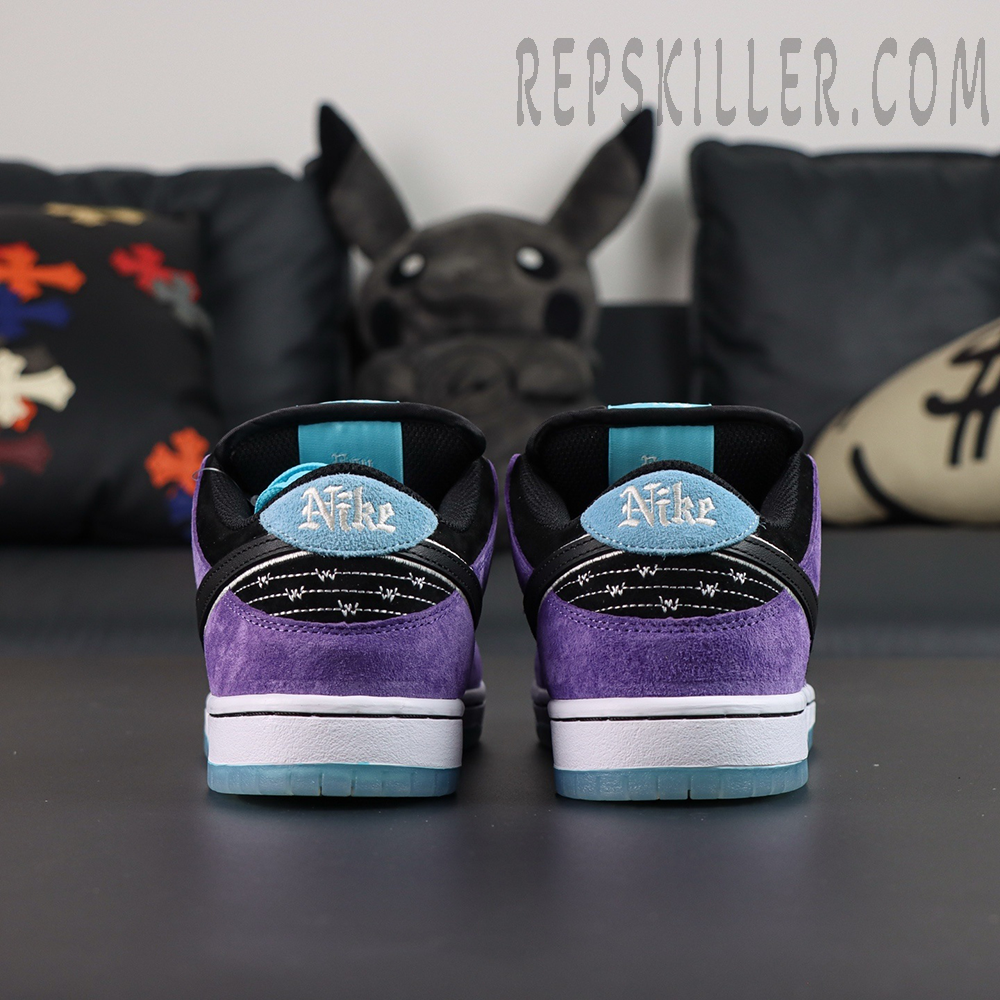 The Hayley Wilson x Nike Dunk Low SB ‘Court Purple’ marks the Australian pro skater’s first signature take on the Dunk Low SB. The upper features a premium build of Court Purple suede overlays, contrasted with black suede quarter panels and a crisp white leather toe box. A black leather Swoosh with white trim adds sharp definition to the side profile. Additional flair comes from Lagoon Pulse accents on the tongue tag and suede heel tab, the latter adorned with gothic-style Nike branding. Completing the design, a translucent blue-tinted rubber outsole reveals bespoke graphics inspired by Hayley Wilson’s creative direction.