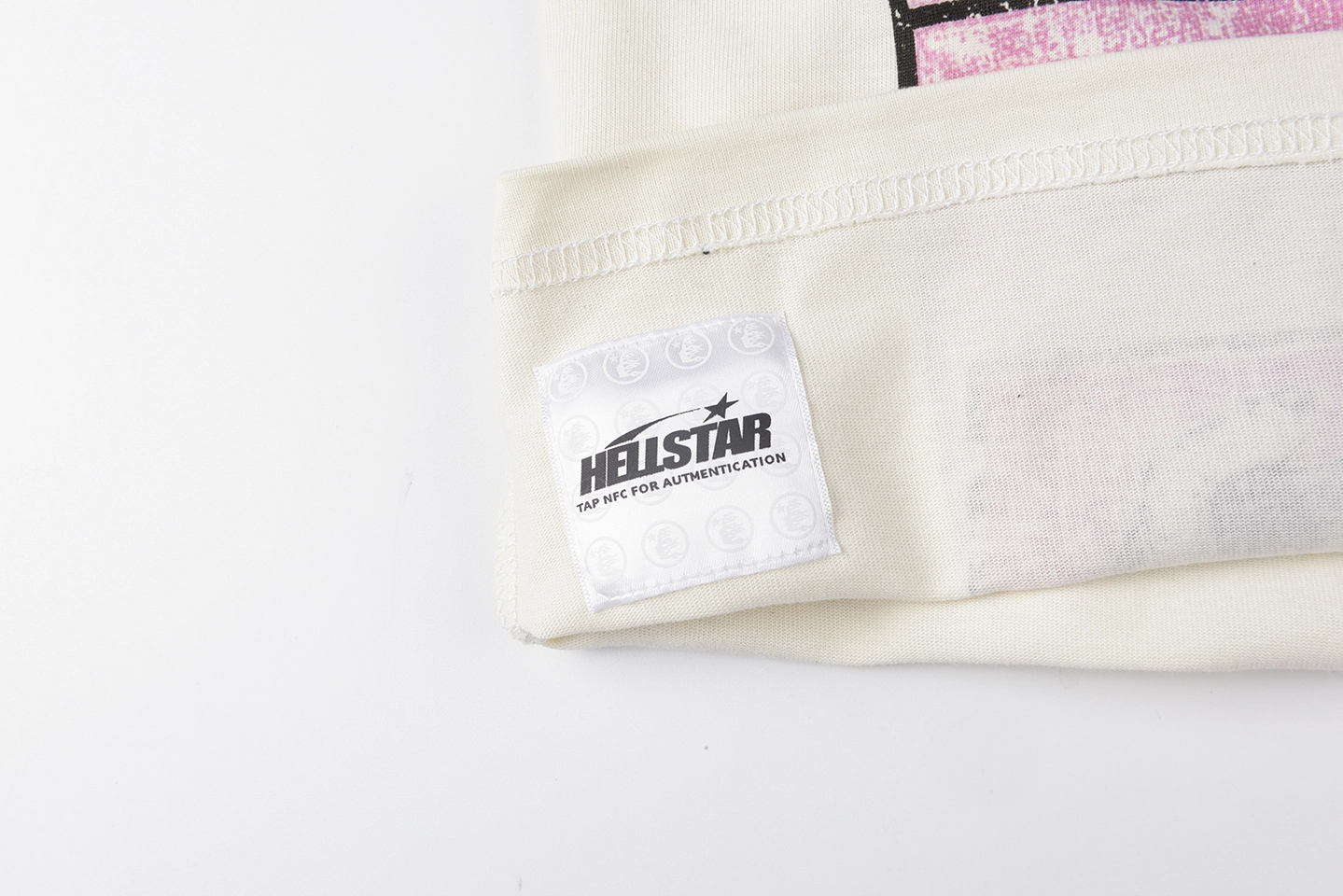 The Hellstar Studios The Path to Paradise Graphic T-Shirt blends a surreal visual grid with striking symbolic imagery—from winged lungs to skulls and crosses—offering a layered interpretation of transformation and inner duality. Crafted from soft cotton in an off-white hue, the shirt balances a bold aesthetic with a refined fit, making it both thought-provoking and wearable.