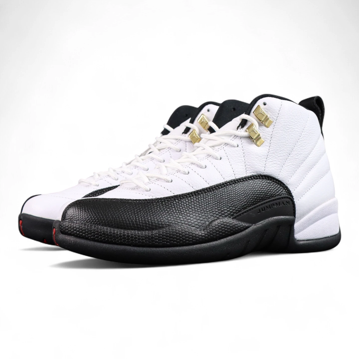 The Air Jordan 12 Retro ‘Taxi’ 2025 brings back the beloved OG colorway with refined details and upgraded performance. It features a white leather upper with signature stitched lines and metallic gold eyelets for a premium touch. Black lizard-textured overlays add structure and durability, while the Jumpman logo appears on the tongue and heel tab. Comfort meets function with a lightweight Phylon midsole and full-length Zoom Air cushioning, supported by a carbon fiber shank plate and herringbone traction outsole for superior grip and stability.