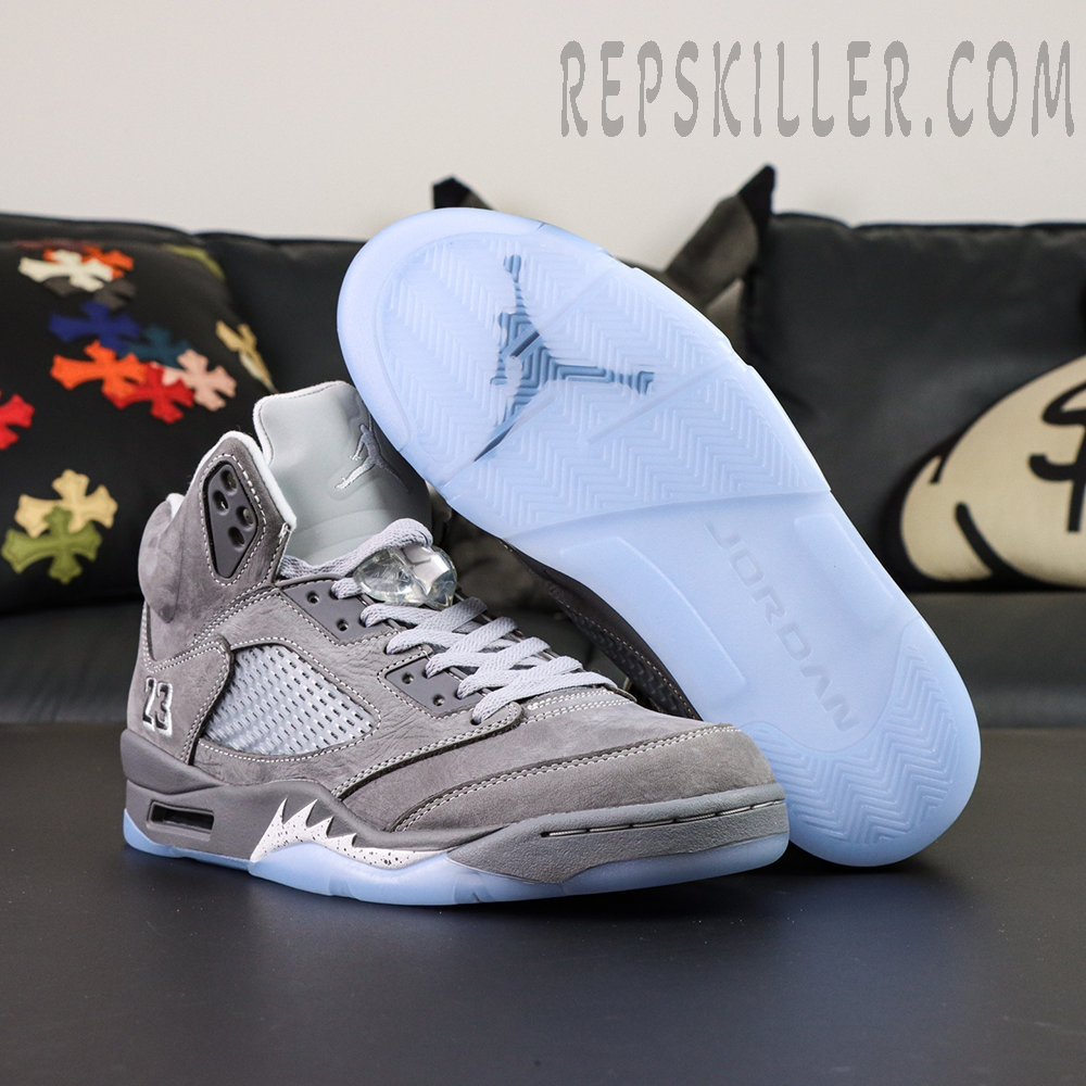 The Air Jordan 5 Retro ‘Wolf Grey’ 2026 reintroduces a beloved colorway with modern craftsmanship and timeless style. The upper is wrapped in layered wolf grey nubuck, contrasted by crisp white stitching and classic mesh quarter panels for ventilation. Signature Jordan details return, including the embroidered ‘23’ on the lateral heel and reflective silver tongue with Jumpman logo. The sculpted midsole features iconic shark tooth accents in white, housing visible Air-Sole cushioning in the heel. A translucent rubber outsole completes the look with enhanced grip and style clarity.
