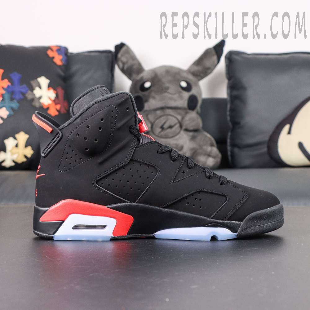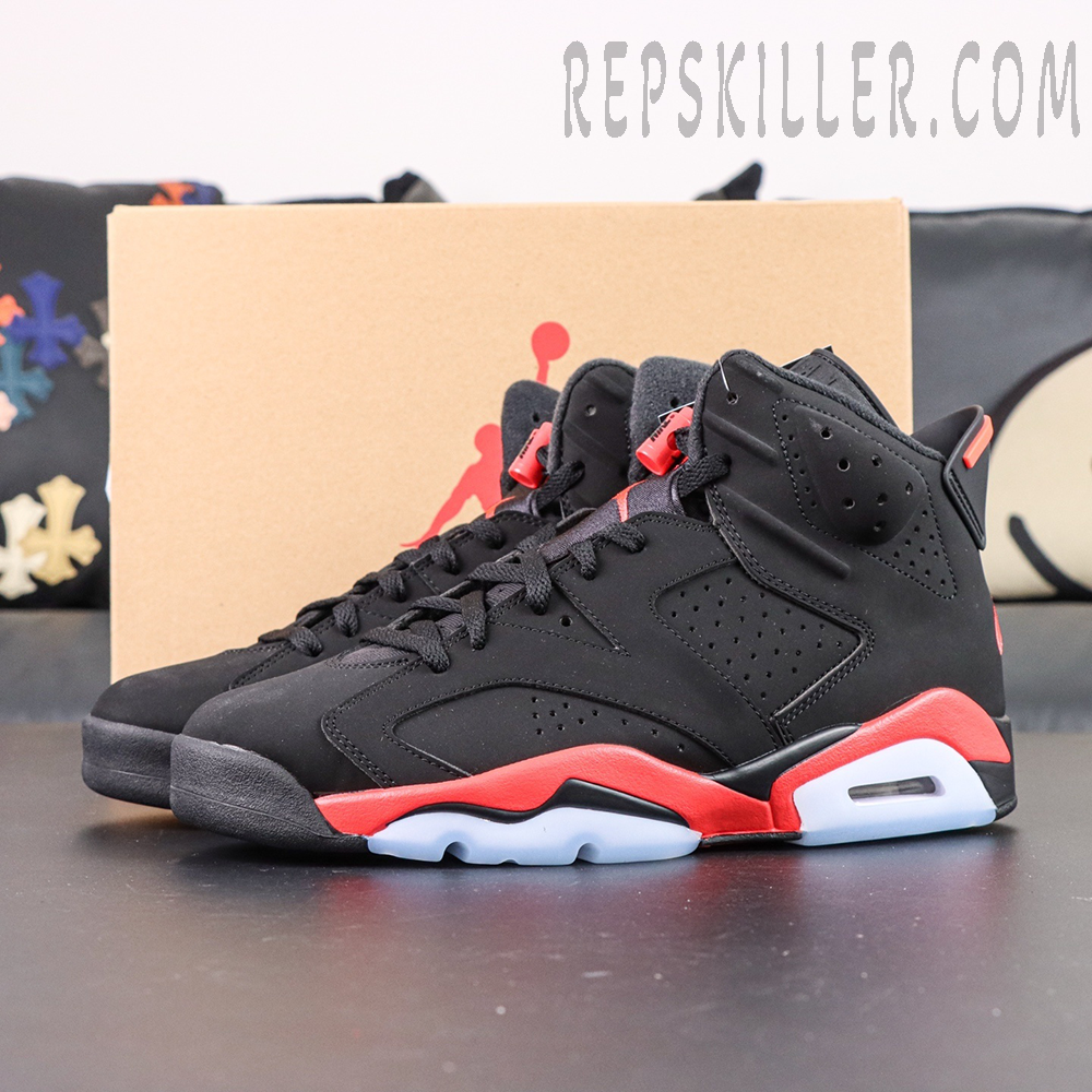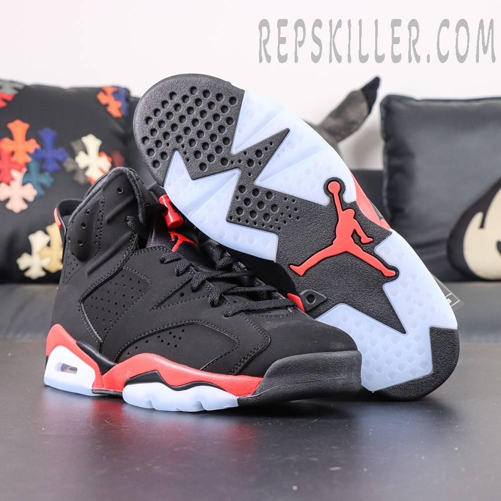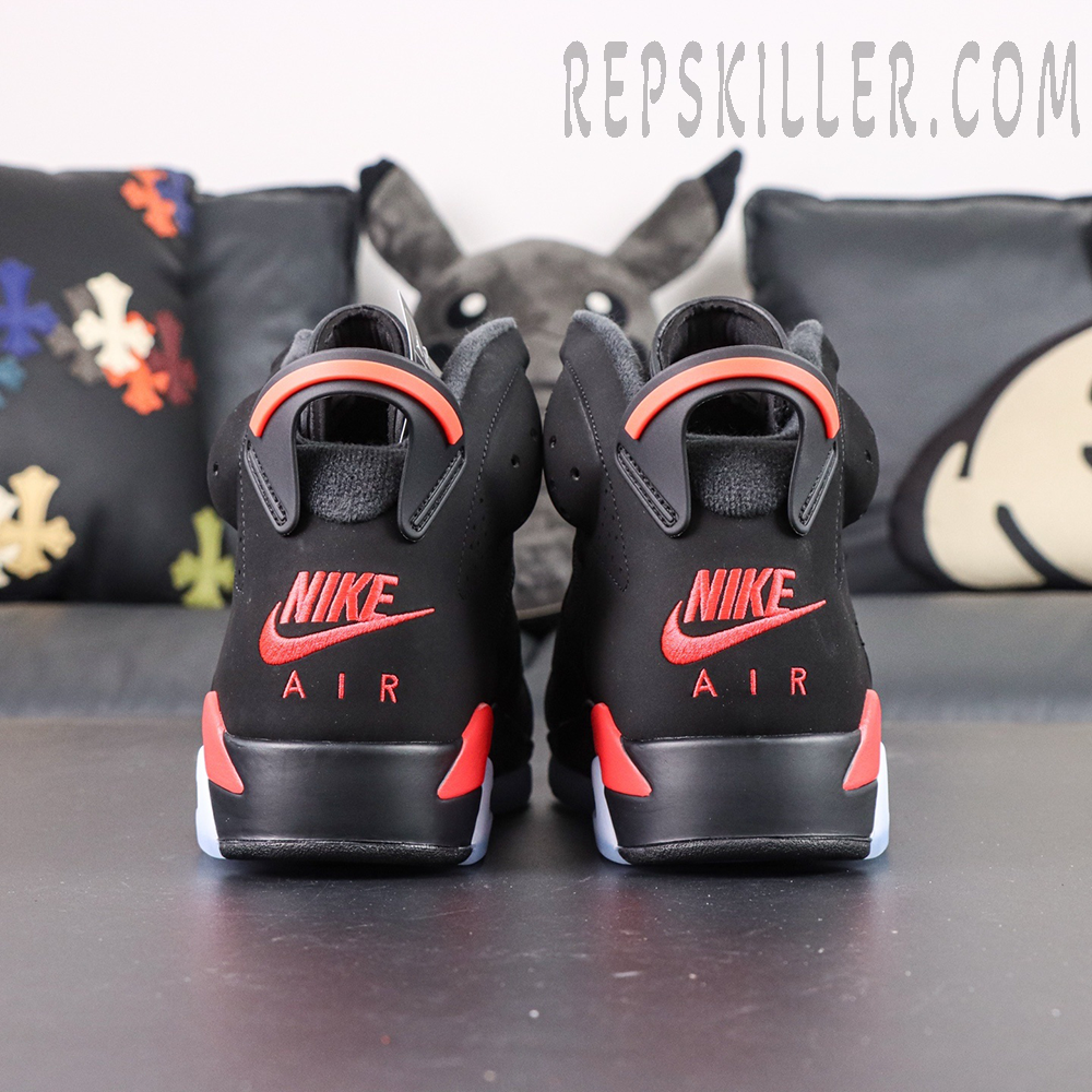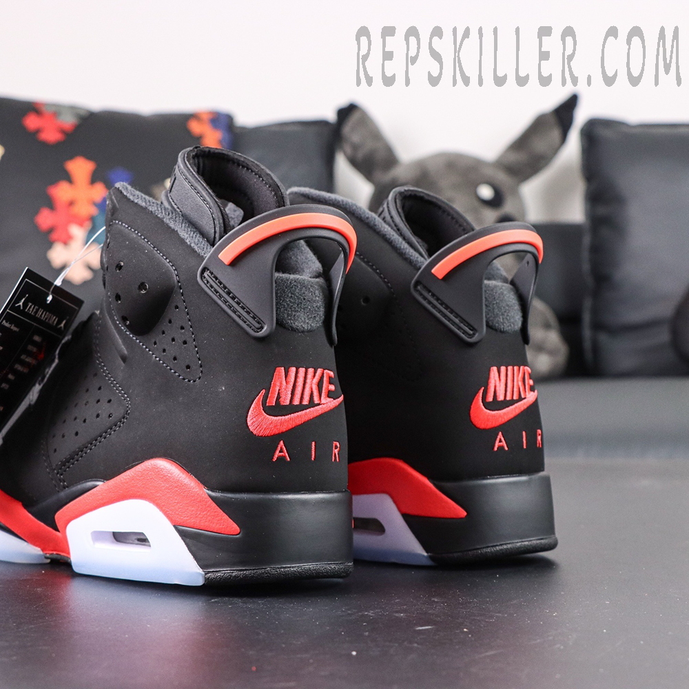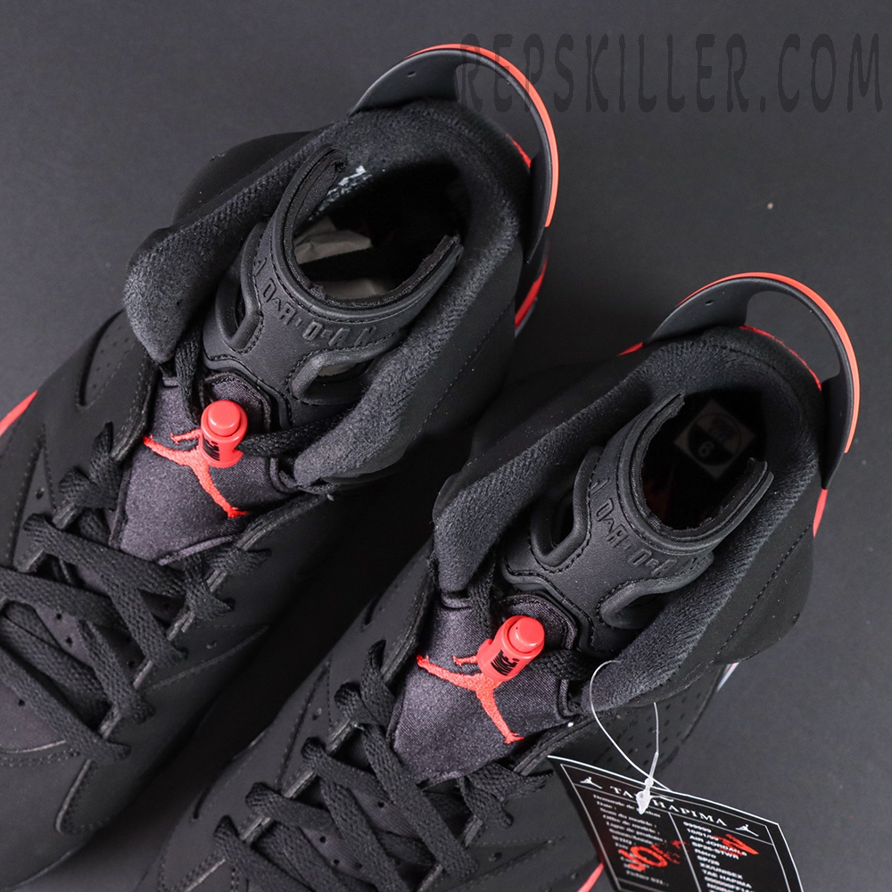 The Air Jordan 6 Retro ‘Infrared’ (2019) stays true to the original colorway worn by Michael Jordan when he won his first NBA championship. Built with black nubuck and a reflective 3M underlay, the mid-top showcases bold Infrared accents on the midsole, heel tab, and lace lock. Finishing touches include Nike Air branding on the heel and sockliner — a classic OG detail making its return for the first time since the 2000 retro.