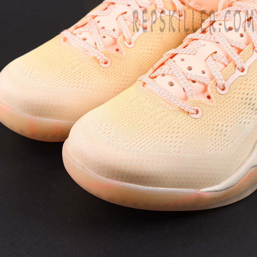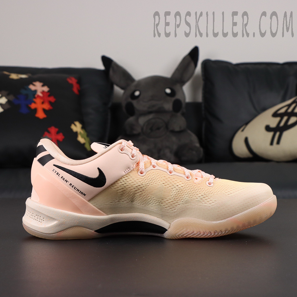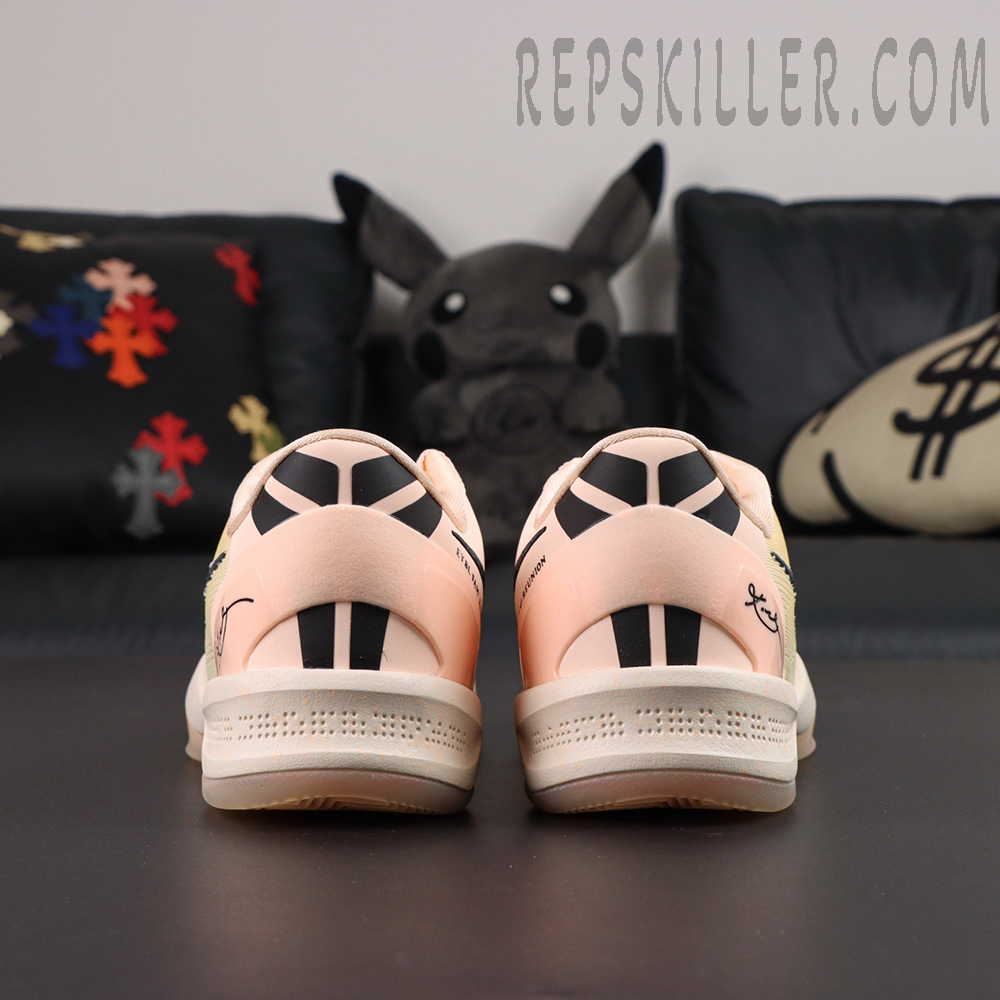 The Kobe 8 Protro ‘EYBL Academy’ PE is a rare player-exclusive colorway crafted for Nike’s Elite Youth Basketball League. Drenched in soft peach hues, this Protro edition elevates Kobe Bryant’s lightweight low-top with a reinforced engineered mesh upper, providing breathability and court responsiveness. A bold black Swoosh and Kobe’s signature on the heel add elite finishes, while the translucent outsole and Lunarlon cushioning ensure fluid movement on hardwood.
