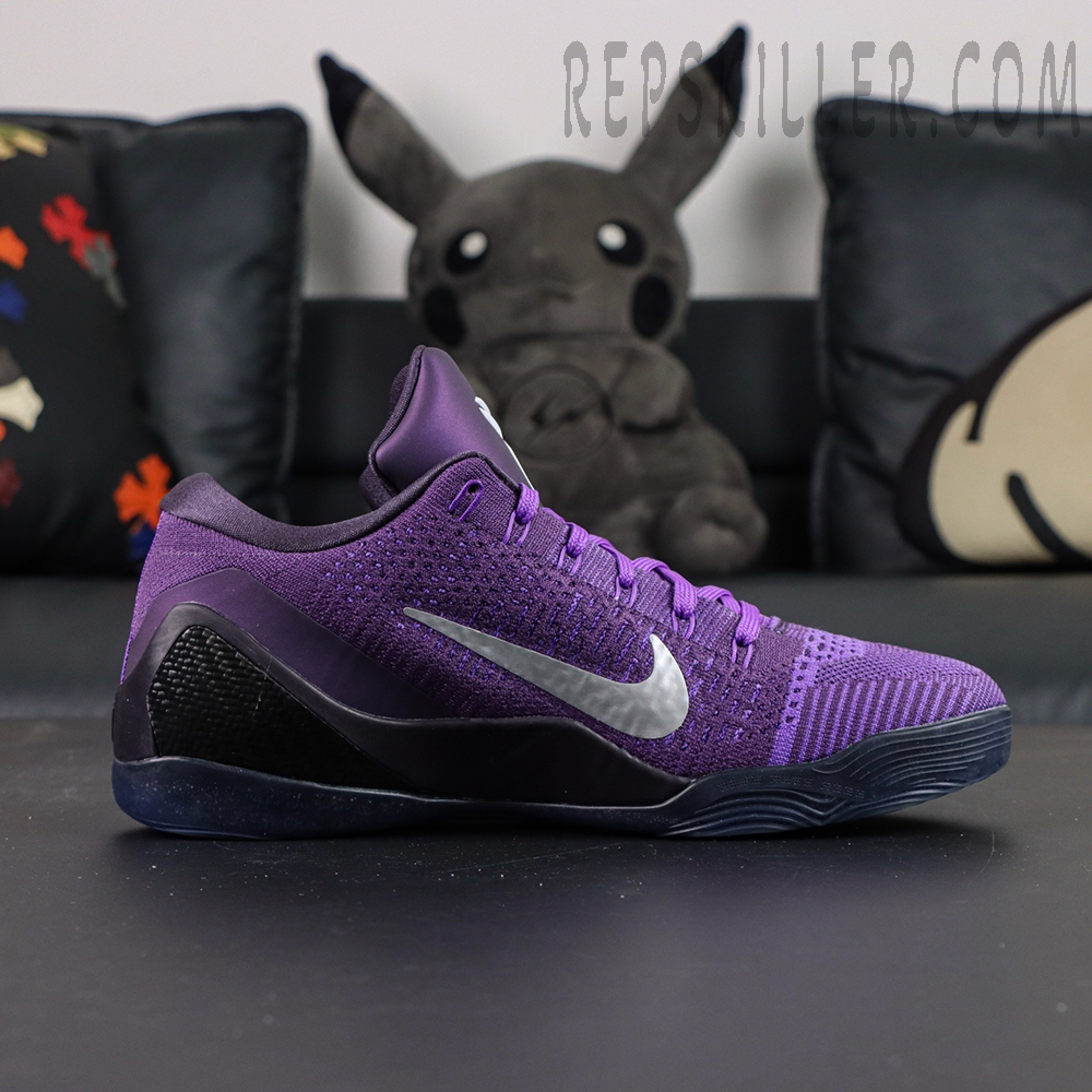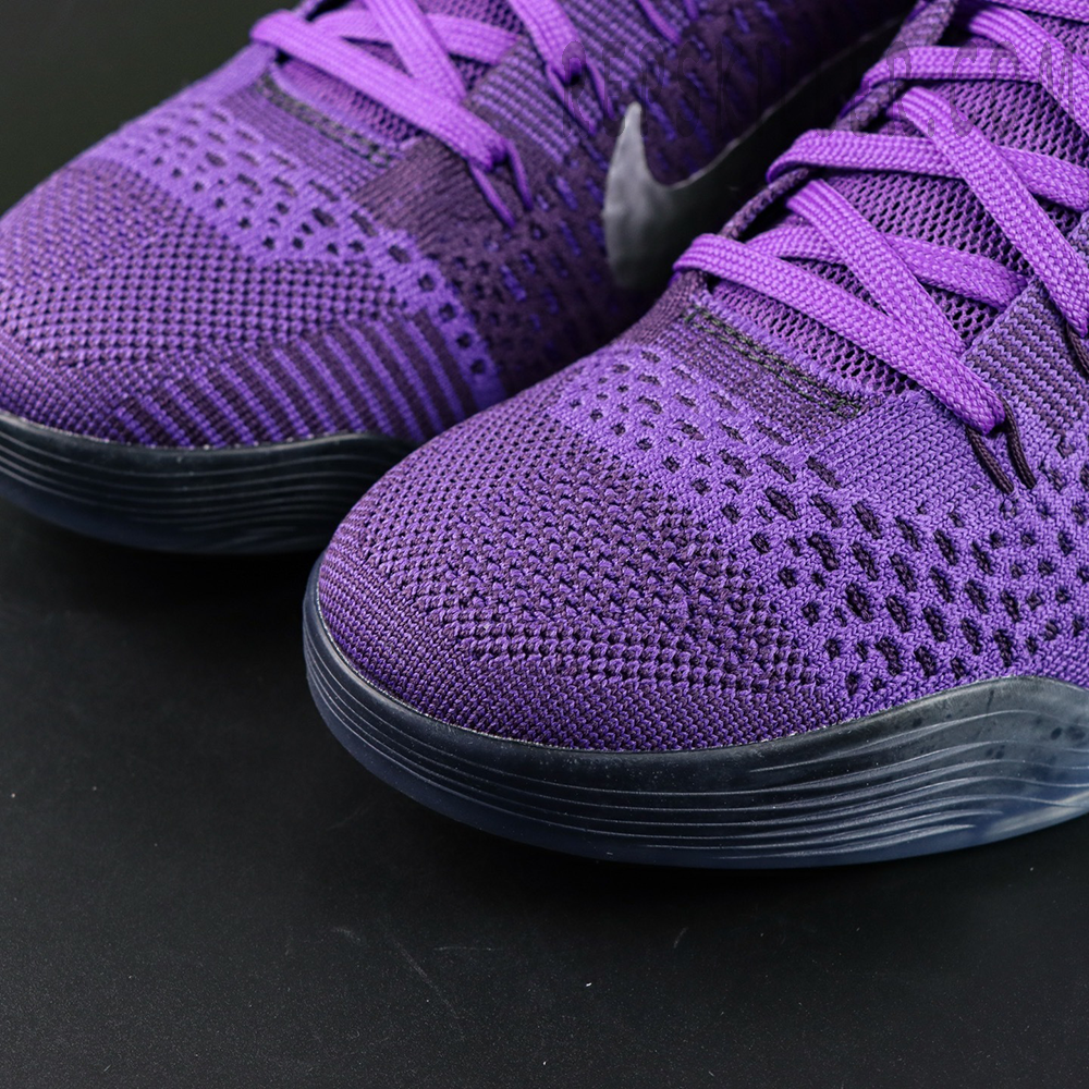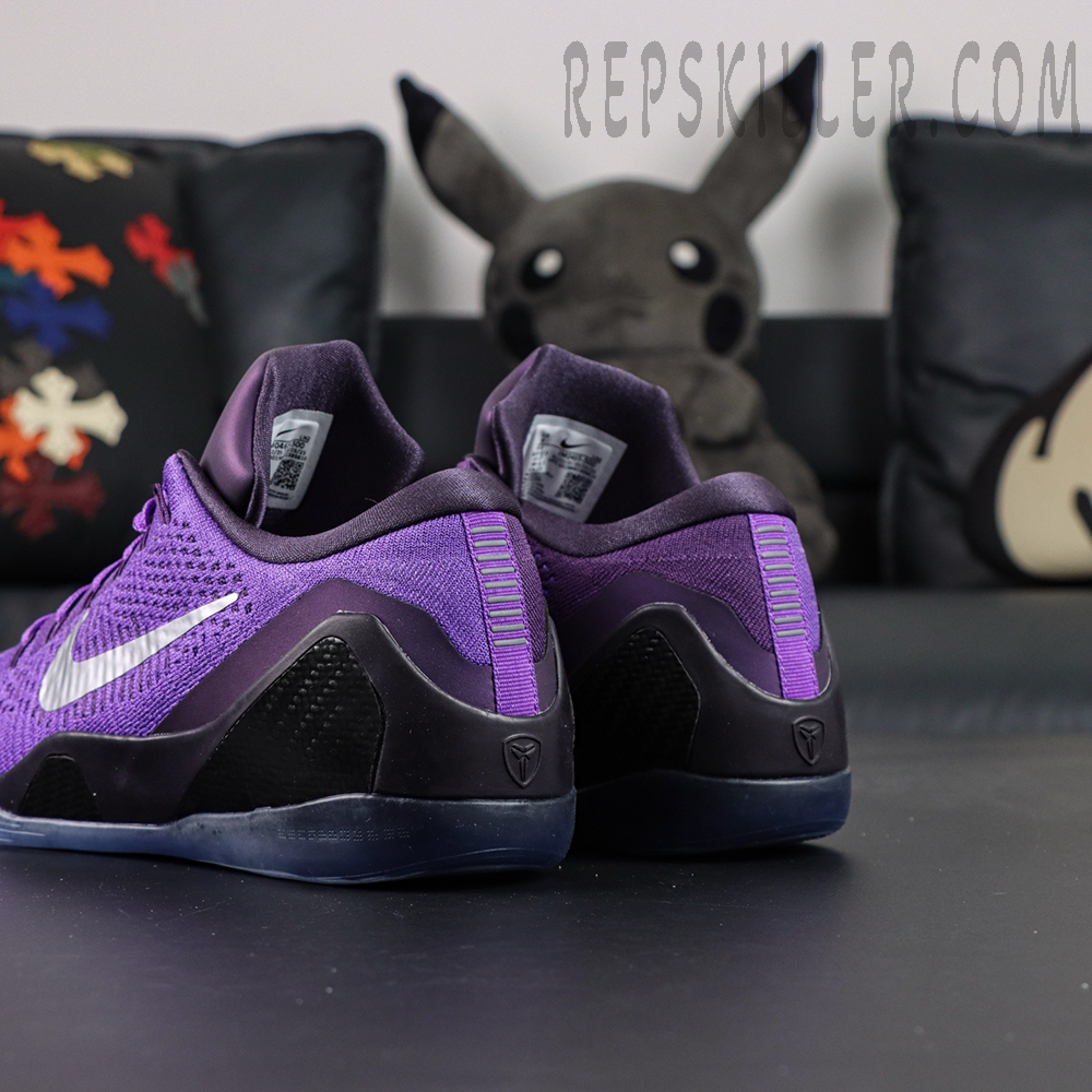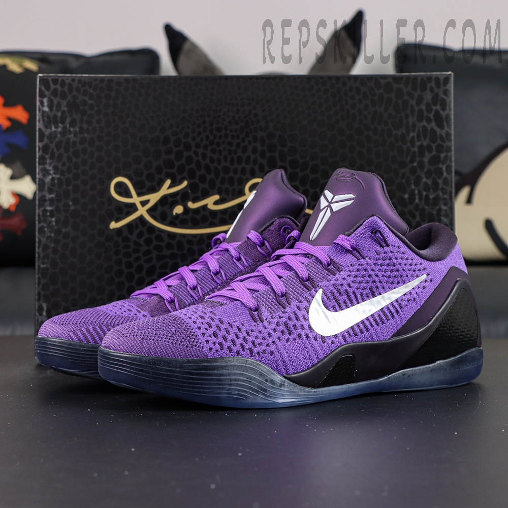 The upper is constructed with premium purple Flyknit, delivering a lightweight, adaptive fit that wraps the foot with precision. A low-cut padded collar enhances mobility, while Dynamic Flywire cables integrate with the lacing system to provide secure lockdown during quick cuts and explosive movements. Metallic details elevate the design, including a silver Swoosh on the side panel and Kobe Bryant’s sheath logo on the tongue—key elements that define top-tier Kobe reps and performance sneaker reps.