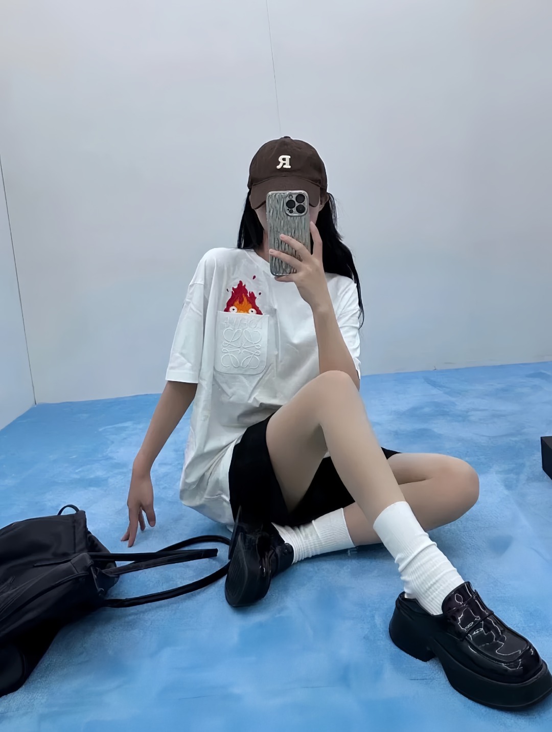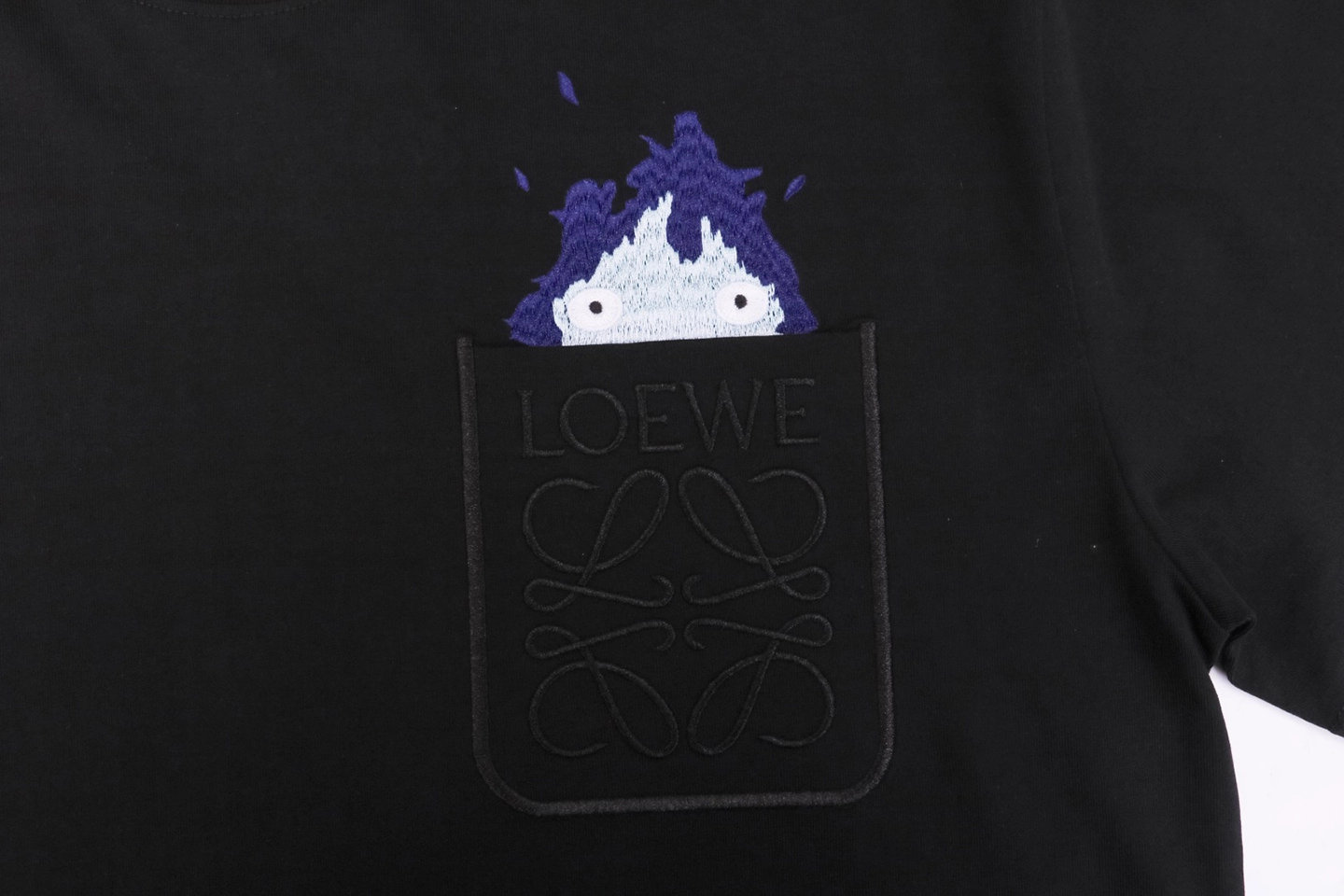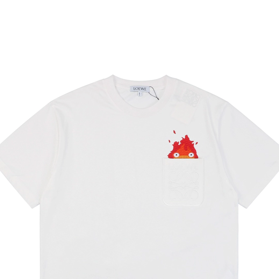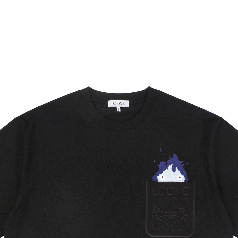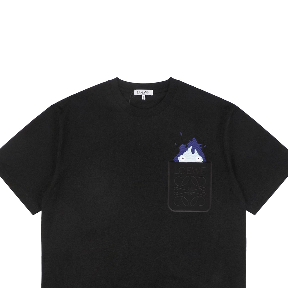 The chest pocket features a subtle L Anagram emboss detail, complemented by the vibrant Calcifer embroidery created using high-precision embroidery machines. The layered embroidery technique produces rich colors and a dimensional effect, enhancing the visual impact of the design.