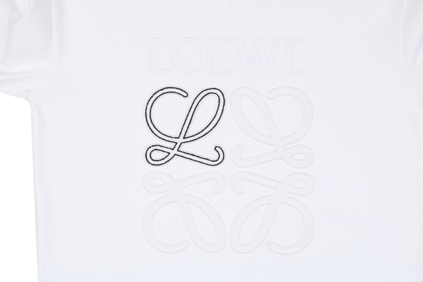 • Two-tone layered Anagram embroidery for subtle dimensional effect