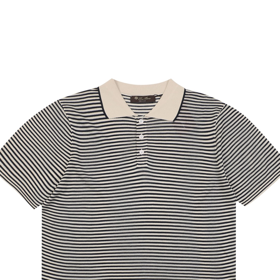 The LP Elvo Striped Contrast Collar Knit Polo T-shirt offers a timeless yet elevated take on classic polo styling. Crafted from a lightweight knitted fabric, the piece showcases fine horizontal stripes in neutral tones, contrasted by a soft beige collar for a refined finish. Its relaxed silhouette, short sleeves, and buttoned placket balance sophistication and casual comfort, making it ideal for both leisure and semi-formal occasions.
