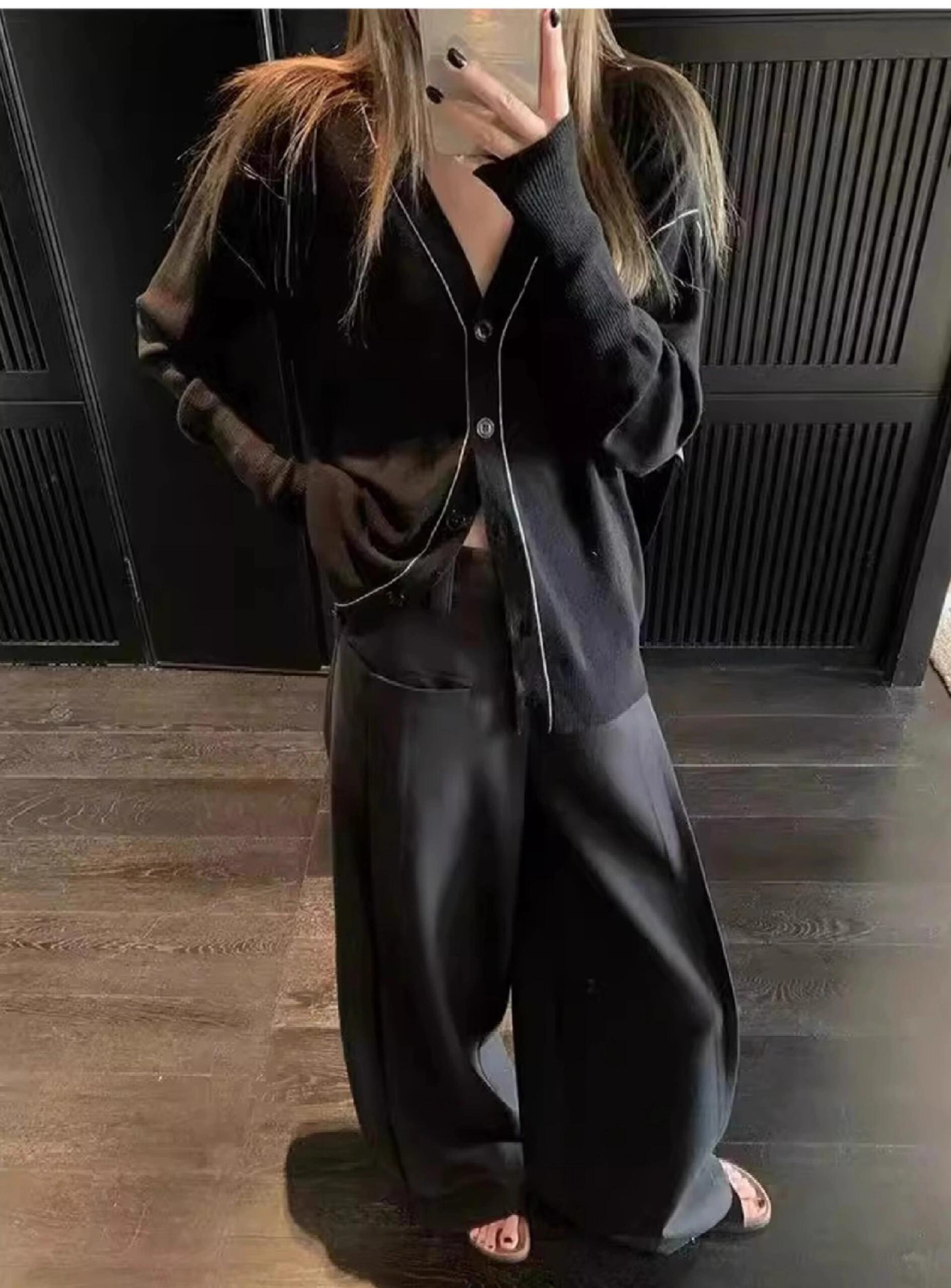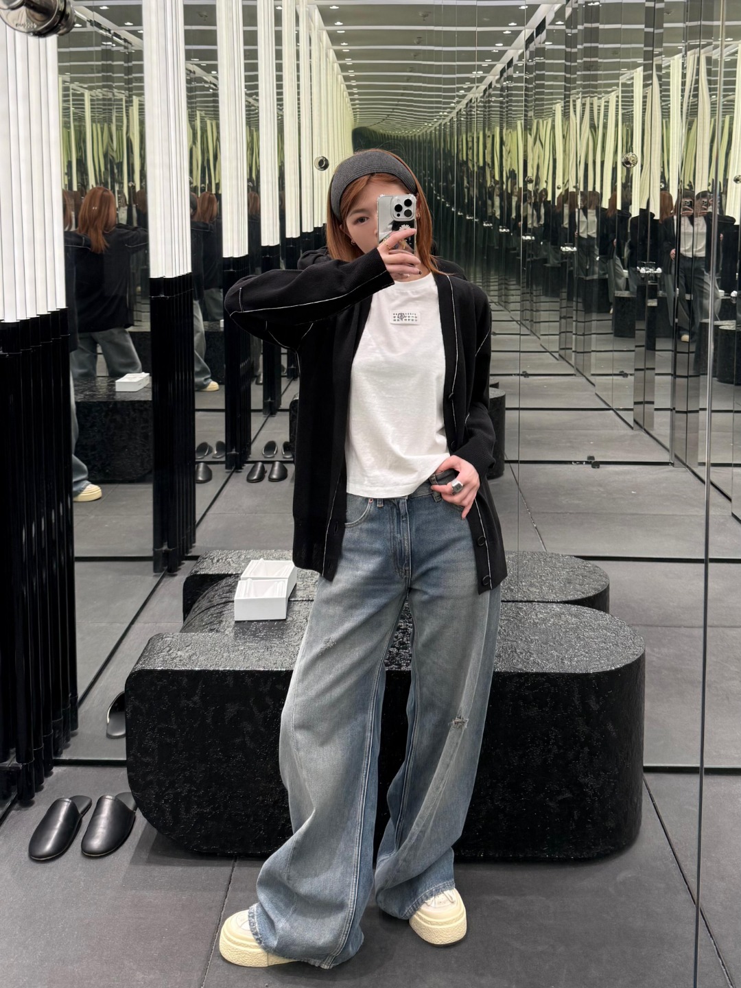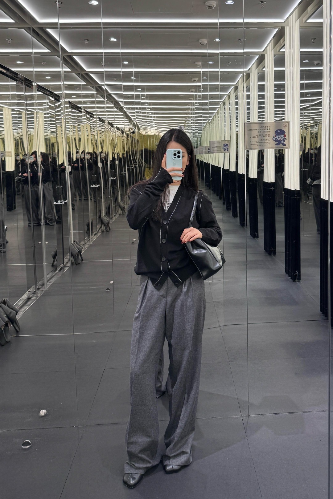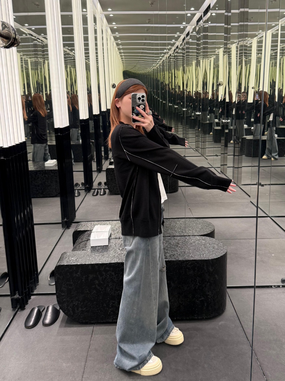 The Maison Margiela Contrast Stitch V-Neck Cardigan is crafted from a premium blend of 30% wool, 40% nylon, and 30% acrylic, delivering a soft, warm, and durable texture. Knitted using a German Stoll 12-gauge machine, the surface remains smooth, structured, and high-quality. Maison Margiela’s signature inside-out construction and chain-stitch seaming ensure comfortable wear with reinforced durability. The relaxed shoulder design enhances a modern, effortless look, while the distinctive contrast stitching highlights the brand’s iconic minimalist aesthetic. This cardigan is perfect for everyday wear, layering, and refined seasonal styling.