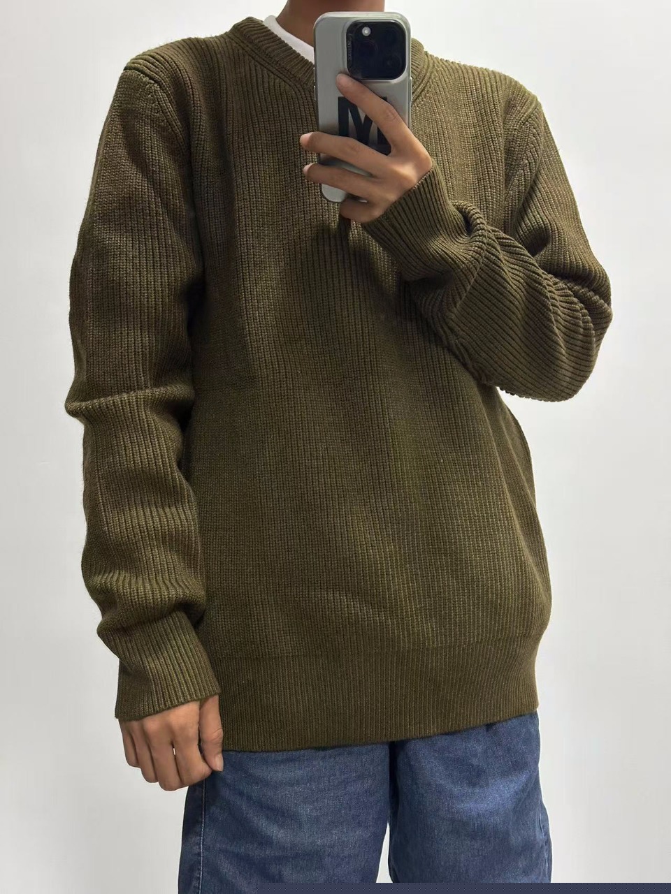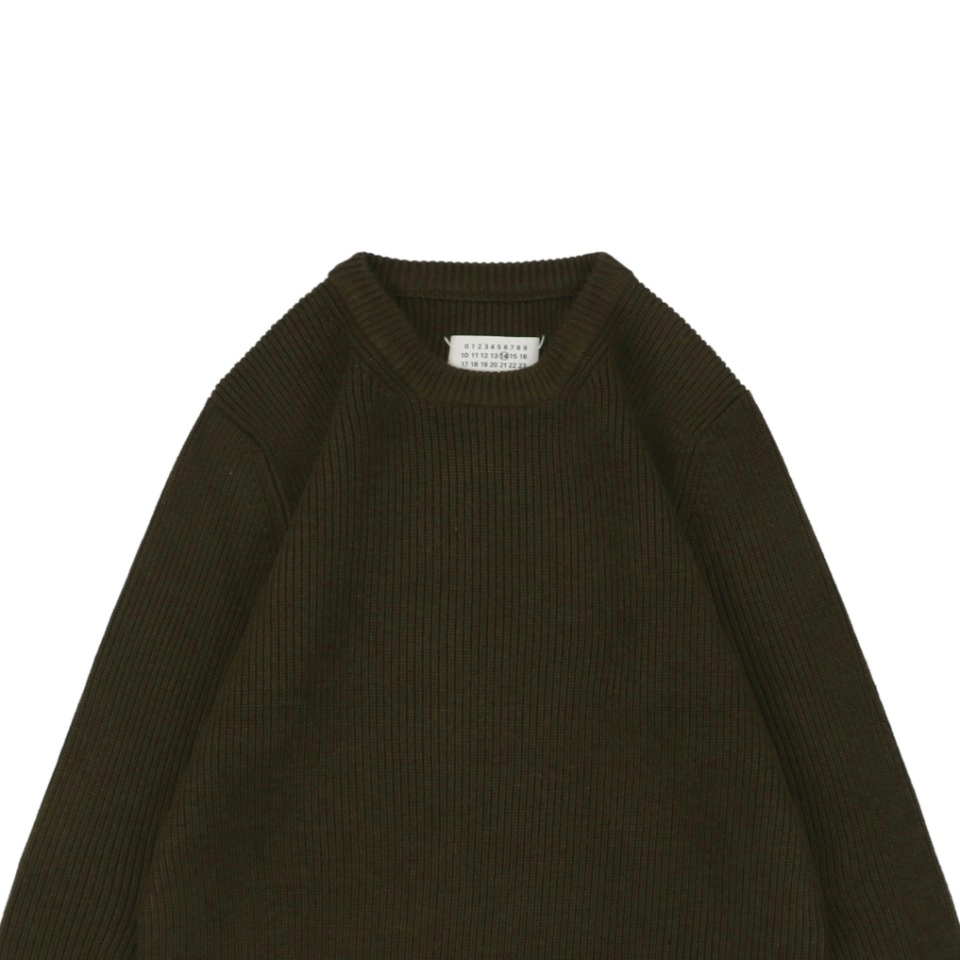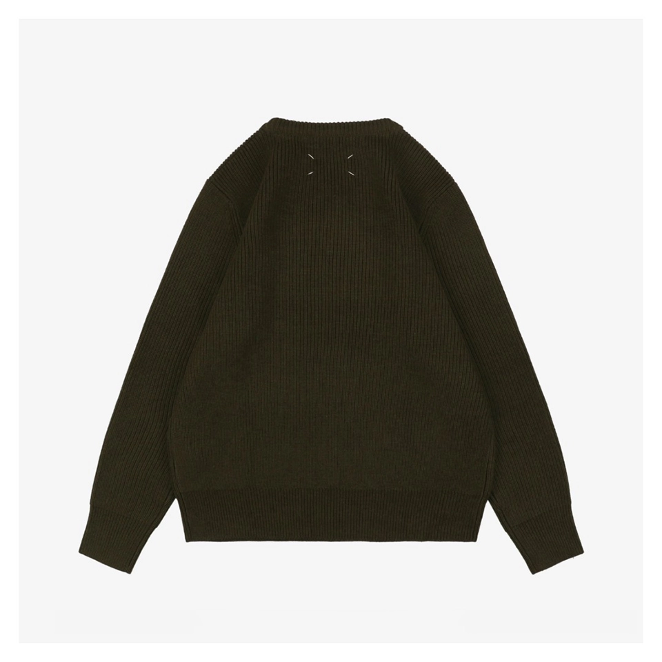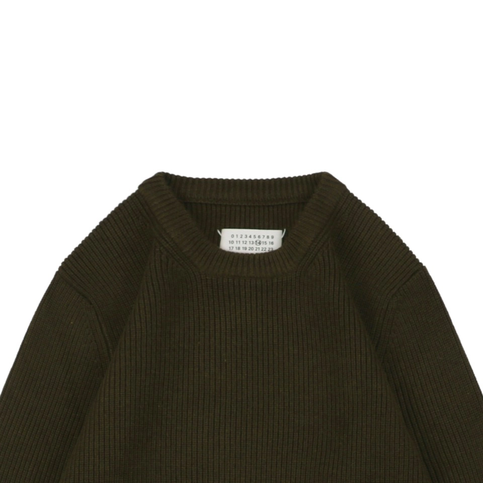 The Maison Margiela Four-Stitches Solid Knit Crewneck Sweater embodies the brand’s signature minimalist aesthetic, highlighted by the iconic four white stitches on the back neckline. Crafted from a soft, structured rib-knit fabric, this sweater delivers a refined silhouette with a subtly oversized, relaxed fit. The clean, seamless front and understated texture enhance its versatile appeal, while the raglan sleeves contribute to a smooth, comfortable drape. Available in two classic tones, this piece is ideal for layering or wearing on its own, showcasing Maison Margiela’s dedication to quiet luxury and timeless essentials.