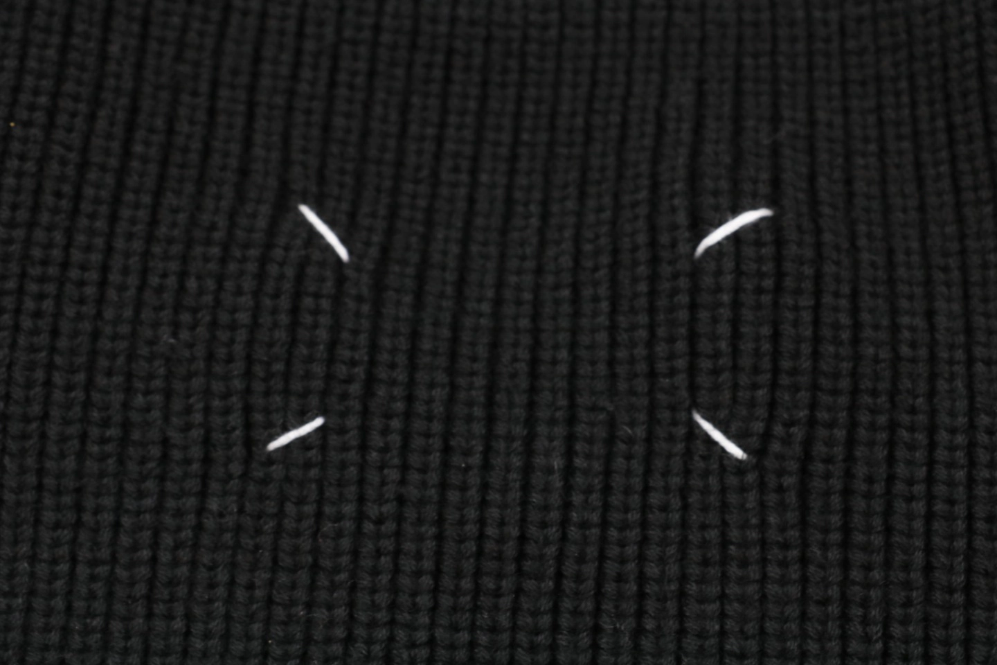 This Maison Margiela Signature Four-Stitches Knit Sweater delivers the brand’s iconic minimalist aesthetic with exceptional craftsmanship. Made from a premium blend of 85% cotton, 10% cashmere, and 5% spandex, the sweater feels soft, warm, and refined without adding weight.