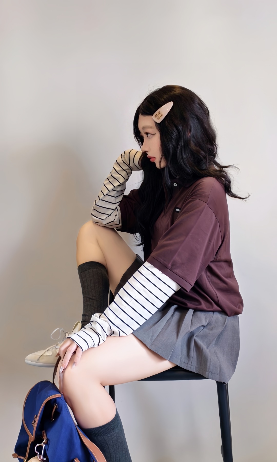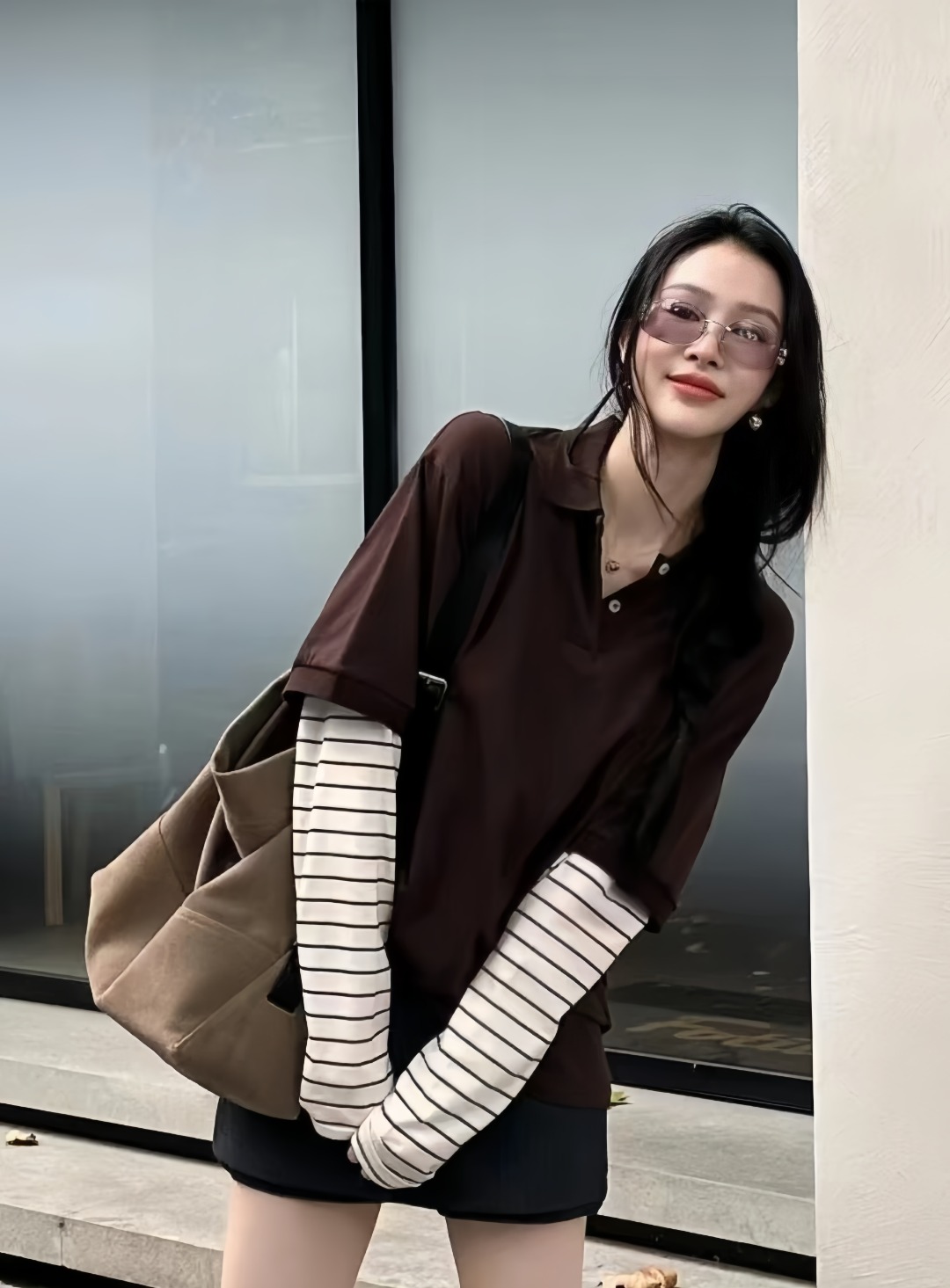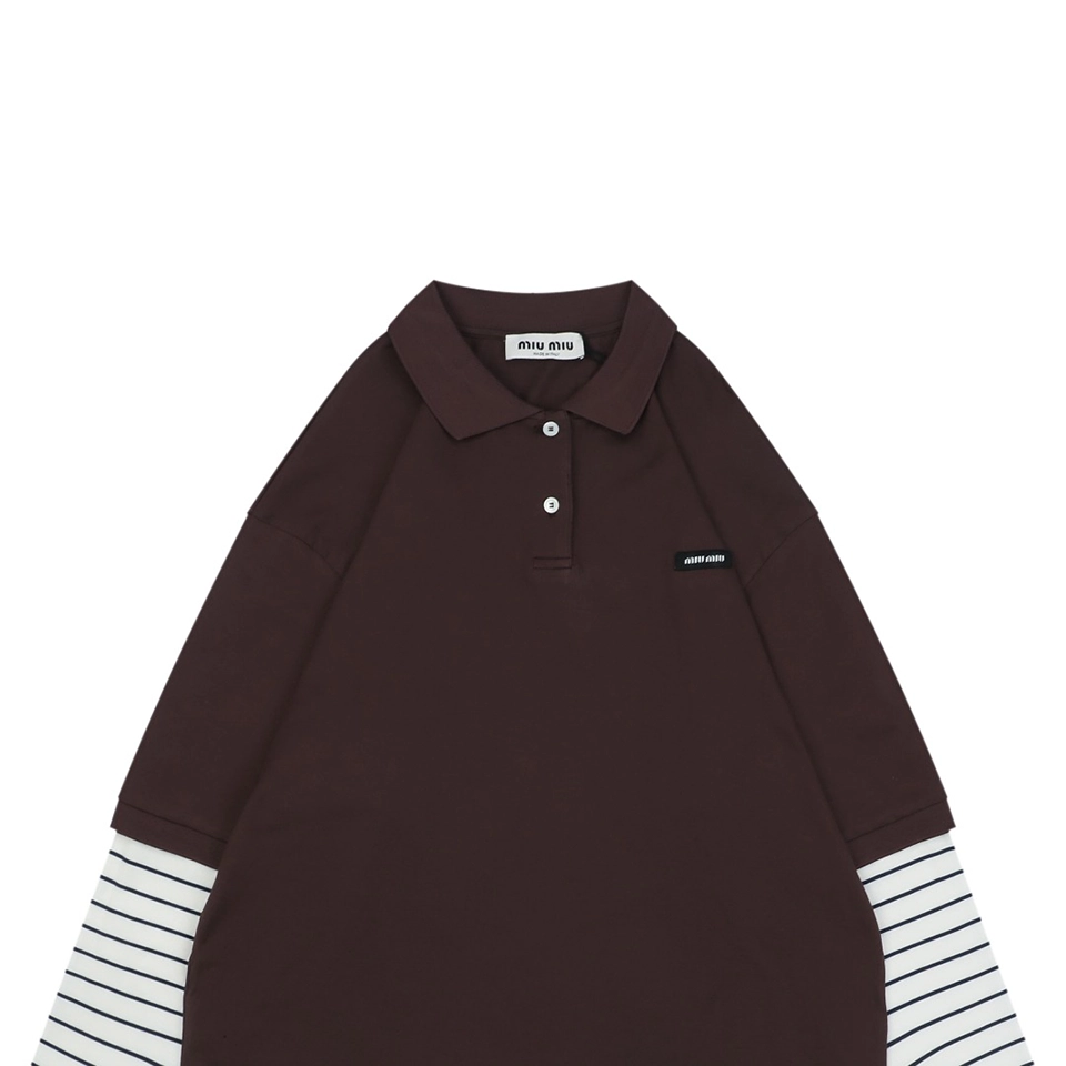 This MM Brown Striped Long-Sleeve Polo Shirt blends refined craftsmanship with a relaxed, collegiate-inspired aesthetic. The main body is made from premium 60s double-ply combed long-staple cotton, offering exceptional softness, breathability, and smooth texture—significantly superior to standard cotton blends. The blue-white striped sleeves are custom-woven 1:1 to match the original spacing, ensuring a clean, authentic look. The mercerized three-ply knitted collar maintains shape and structure, while the custom rubber chest tag and natural mother-of-pearl buttons replicate the original design with high precision. With a loose, flattering silhouette and advanced construction details such as straight-cut striped sleeves and 0.2mm double-stitch hemming, this piece delivers premium comfort, accuracy, and style suitable for everyday wear.