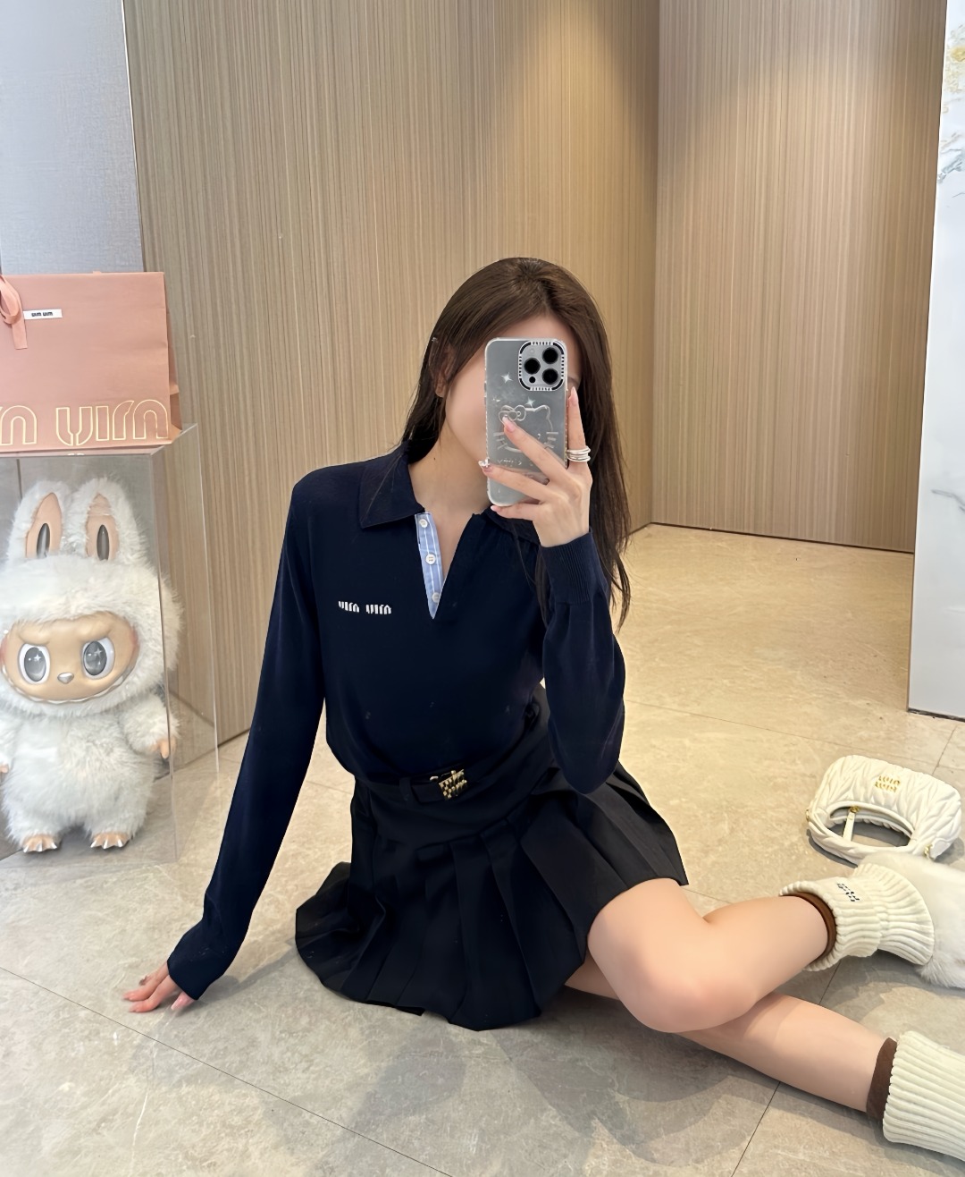 The MM Cashmere Blend Logo Polo Knit is crafted from a premium blend featuring 50% high-mountain cashmere lambswool, specially spun and custom-dyed to achieve the original’s softness, warmth, and refined color. The texture is smooth, cozy, and exceptionally skin-friendly. Designed with a clean silhouette and finished with a subtle chest logo, it captures MM’s signature balance of youthful elegance and understated luxury. A versatile piece suitable for everyday wear and effortless styling with skirts, trousers, or layered looks.