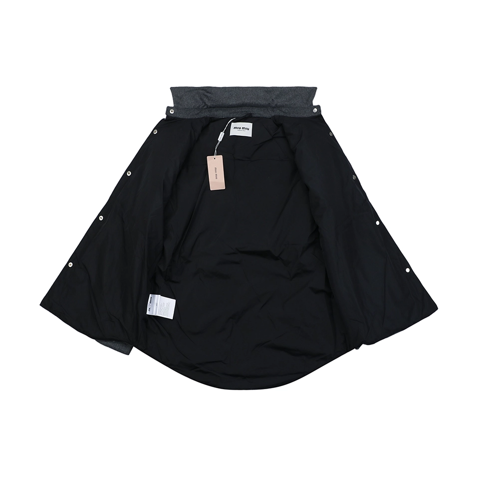 The outer layer is made from 100% cashmere using custom-dyed yarns, offering an exceptionally soft hand feel with a smooth, matte finish. The jacket is filled with 90% white duck down, featuring approximately 280g of fill to ensure lightweight warmth without bulk. The lining is constructed from cupro fiber, providing a silky, breathable, and anti-pilling interior for enhanced comfort.